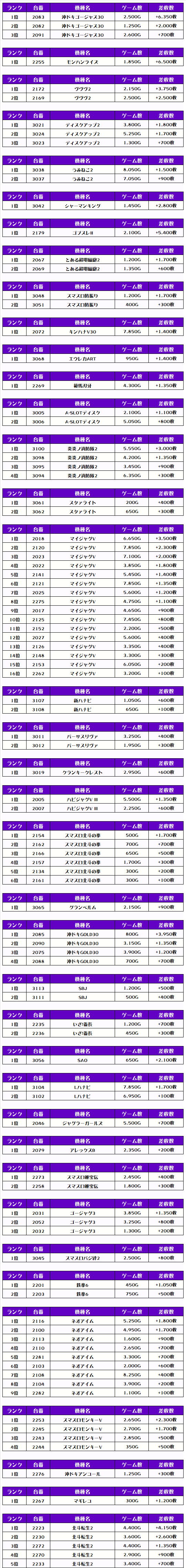 その他の機種の差枚はコチラ🌟