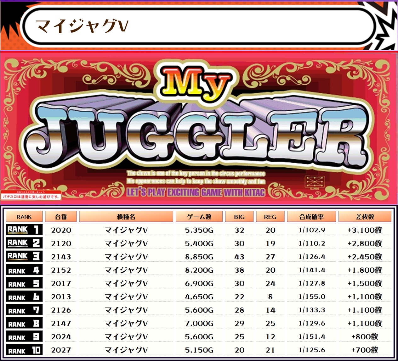 4000枚以上の台がランキングに複数あり、万枚オーバーも出現🔥🔥🔥くぅ~、ベリーナイスですねぇ~👍
