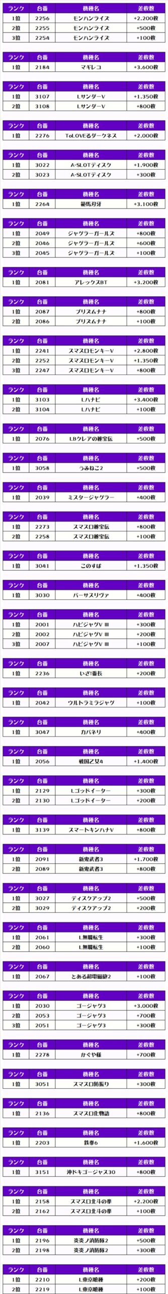 それでは、この日の【機種別差枚ランキング】を見ていきましょう❗️