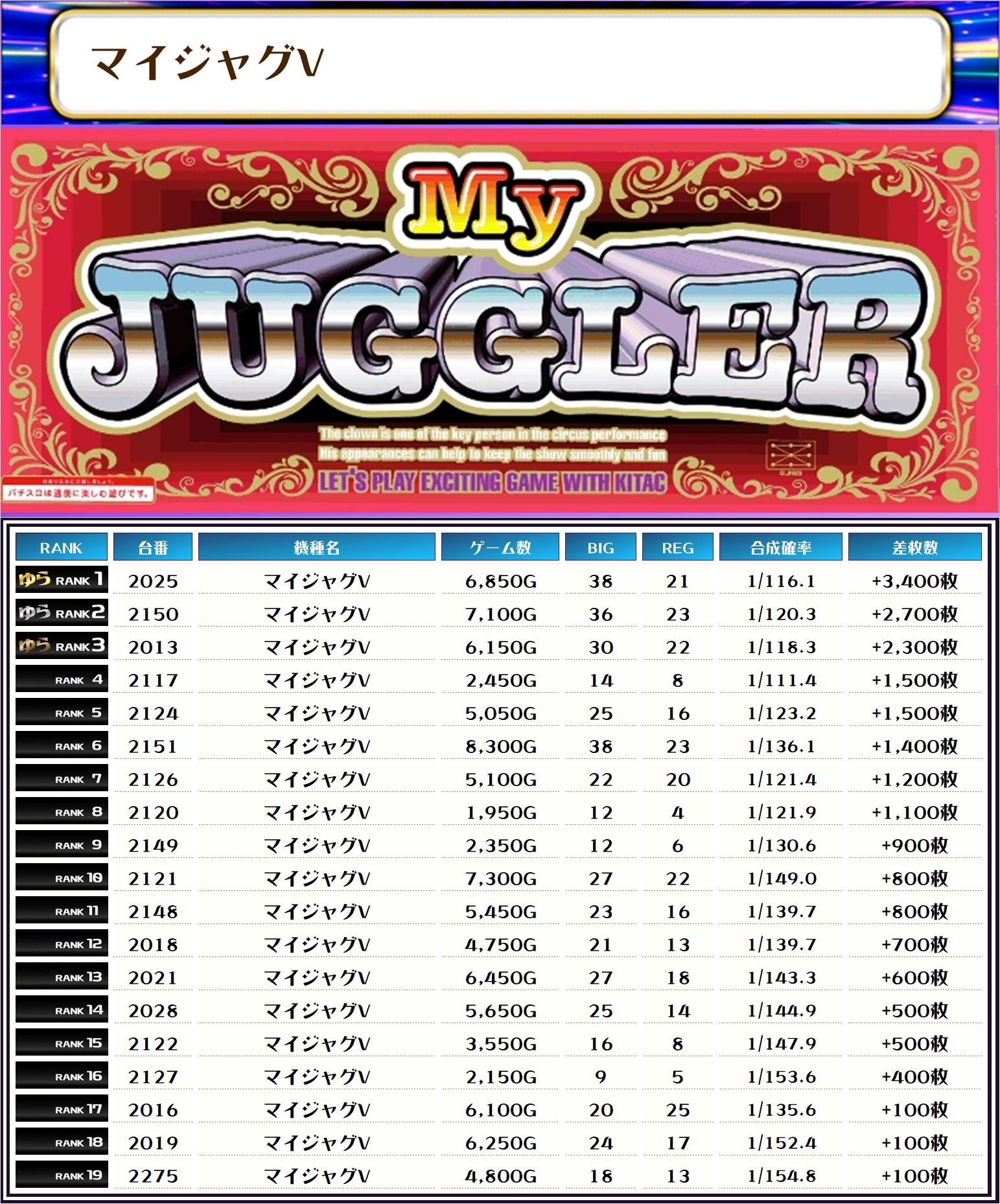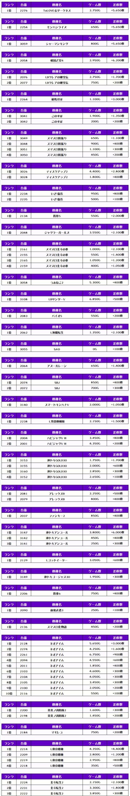 それでは早速、機種別差枚ランキングをチェックしてみましょう❗️