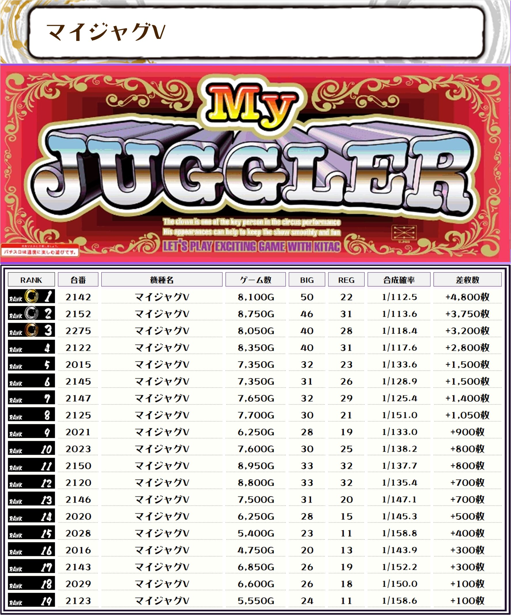 非常に多いのですが、ピックアップしたのは稼働良好かつ勝率が高かった機種になります👍