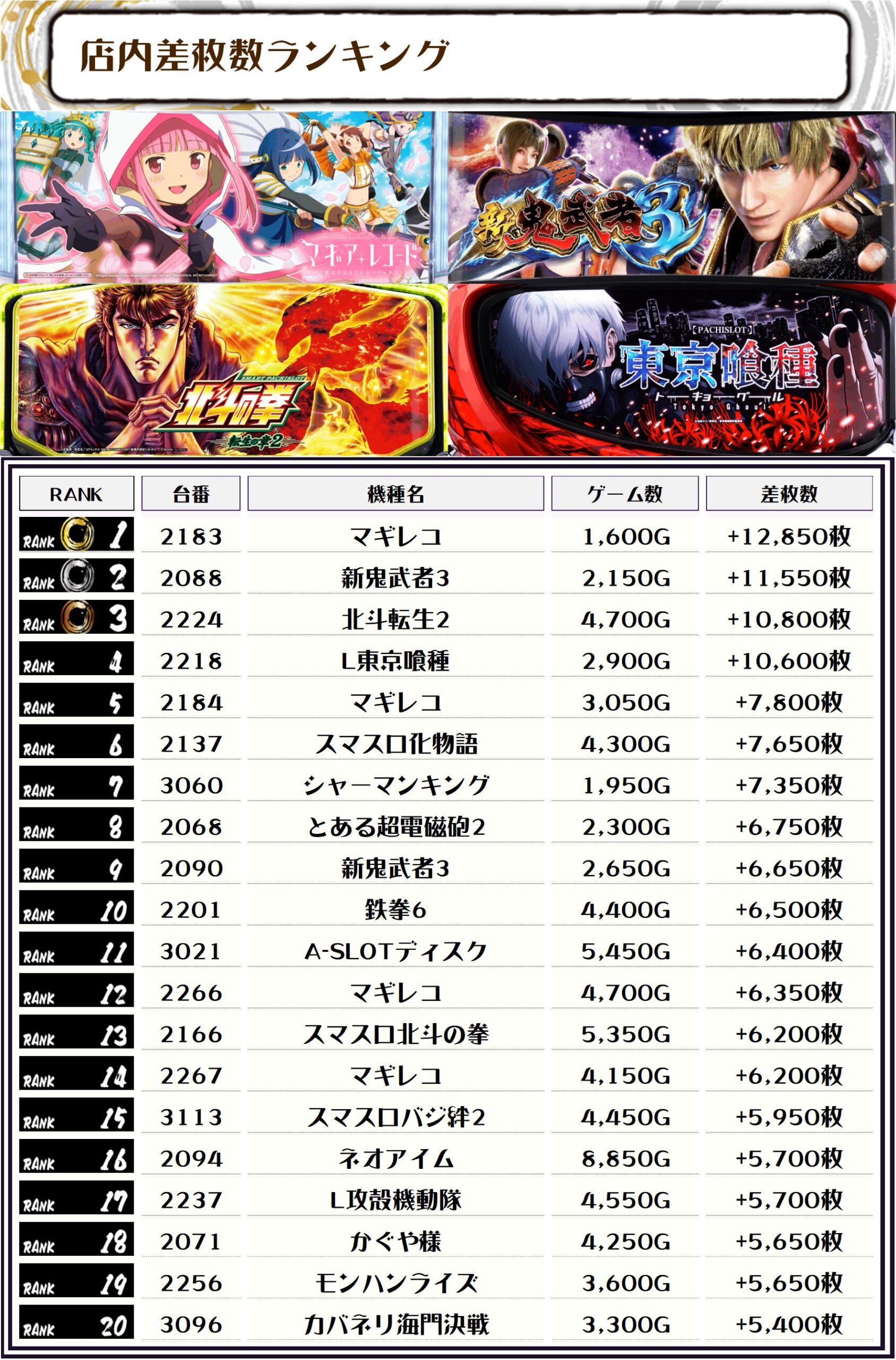 それでは、この日の【機種別差枚ランキング】を見ていきます❗️