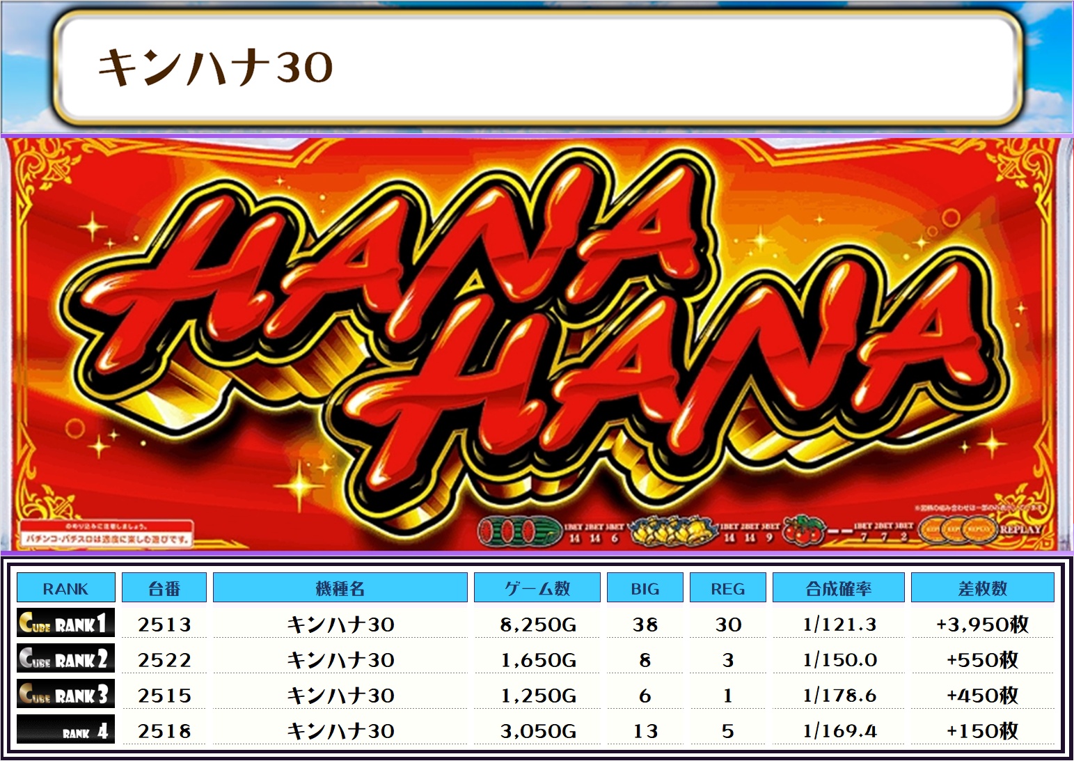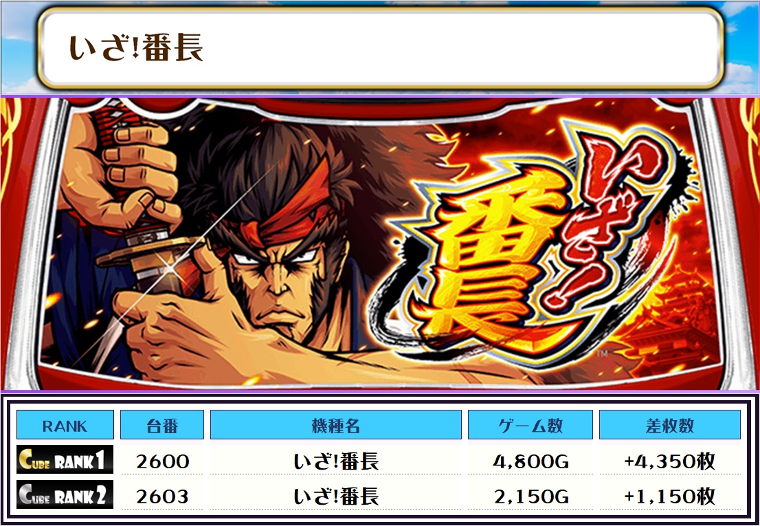 続く2位には【いざ!番長・2600番台】の+4,350枚、そして3位には【キンハナ30・2513番台】の+3,950枚がランクインっ✨