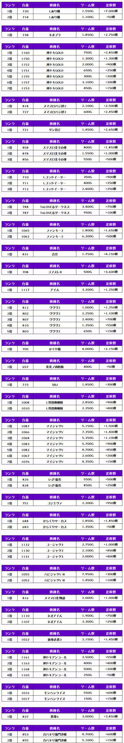 それでは、機種別差枚ランキングをチェックしますか❗️