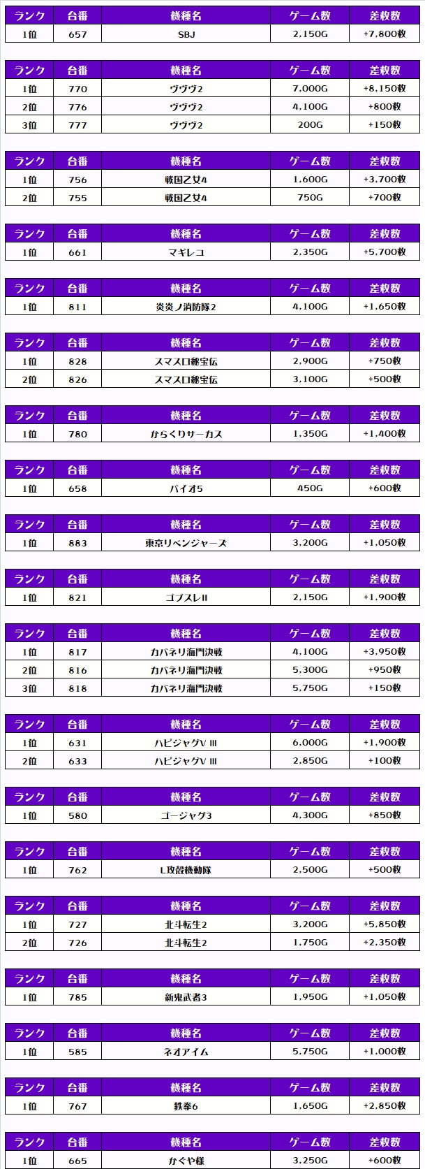 続く2位には【ヴヴヴ2・770番台】の+8,150枚、そして3位には【SBJ・657番台】の+7,800枚がランクインっ🏆🏆🏆