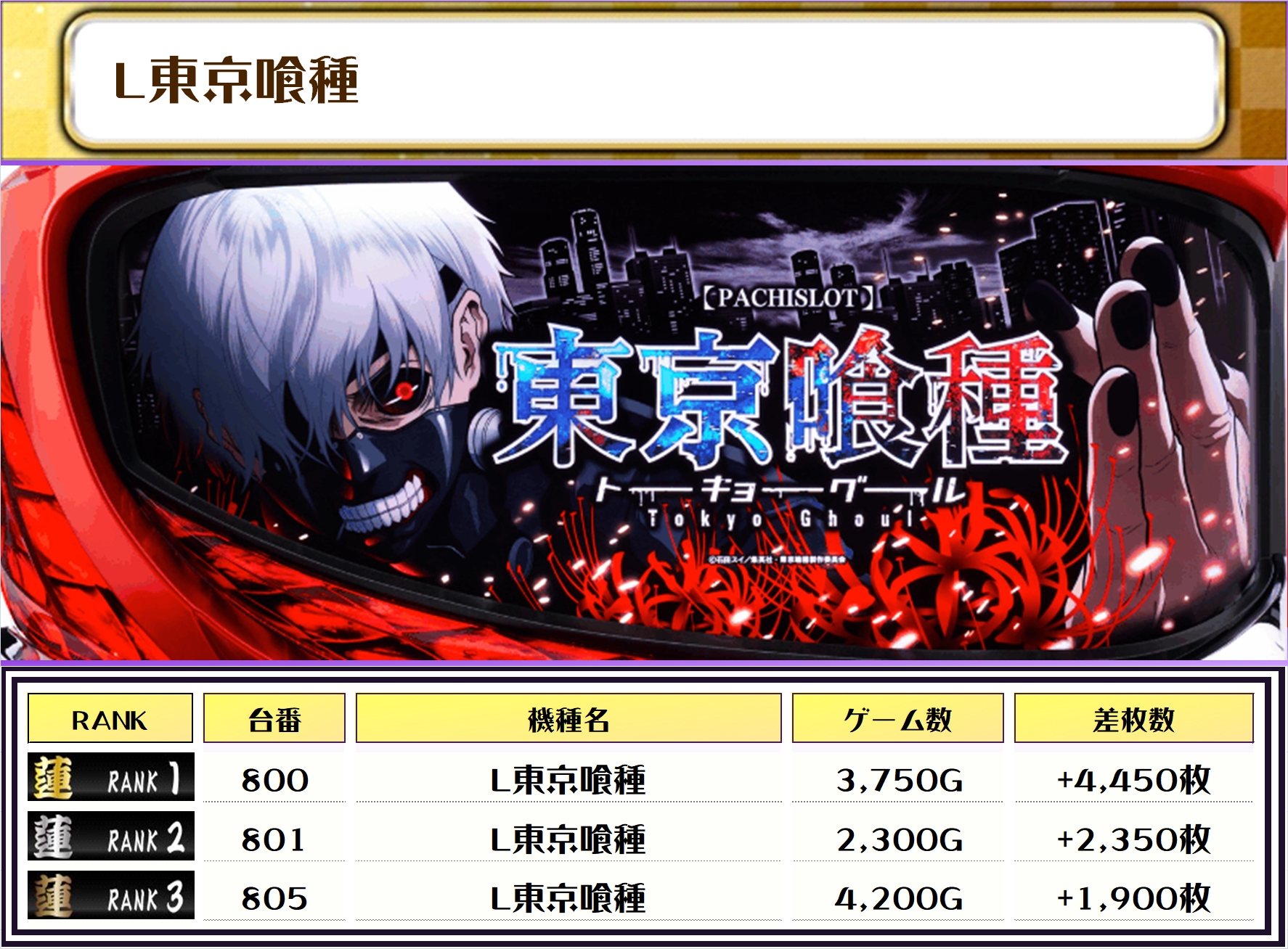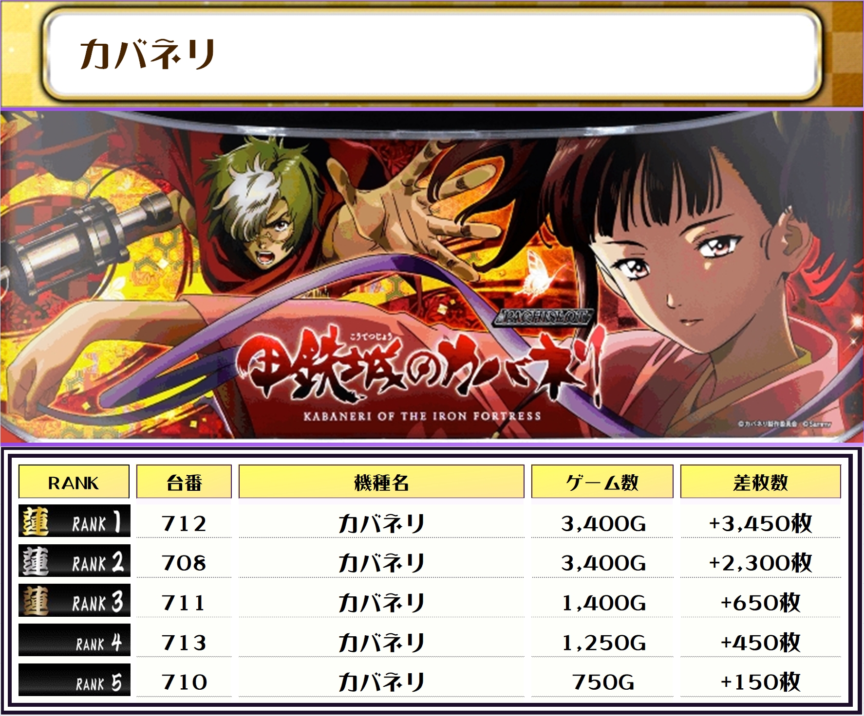 新台のカバネリ海門決戦の導入に合わせて増台した、初代カバネリの躍進が目立っていましたね👀 さらにジャグラー系2機種や沖ドキGOLDなど定番の人気機種からも多くの優秀台が出現していました📝