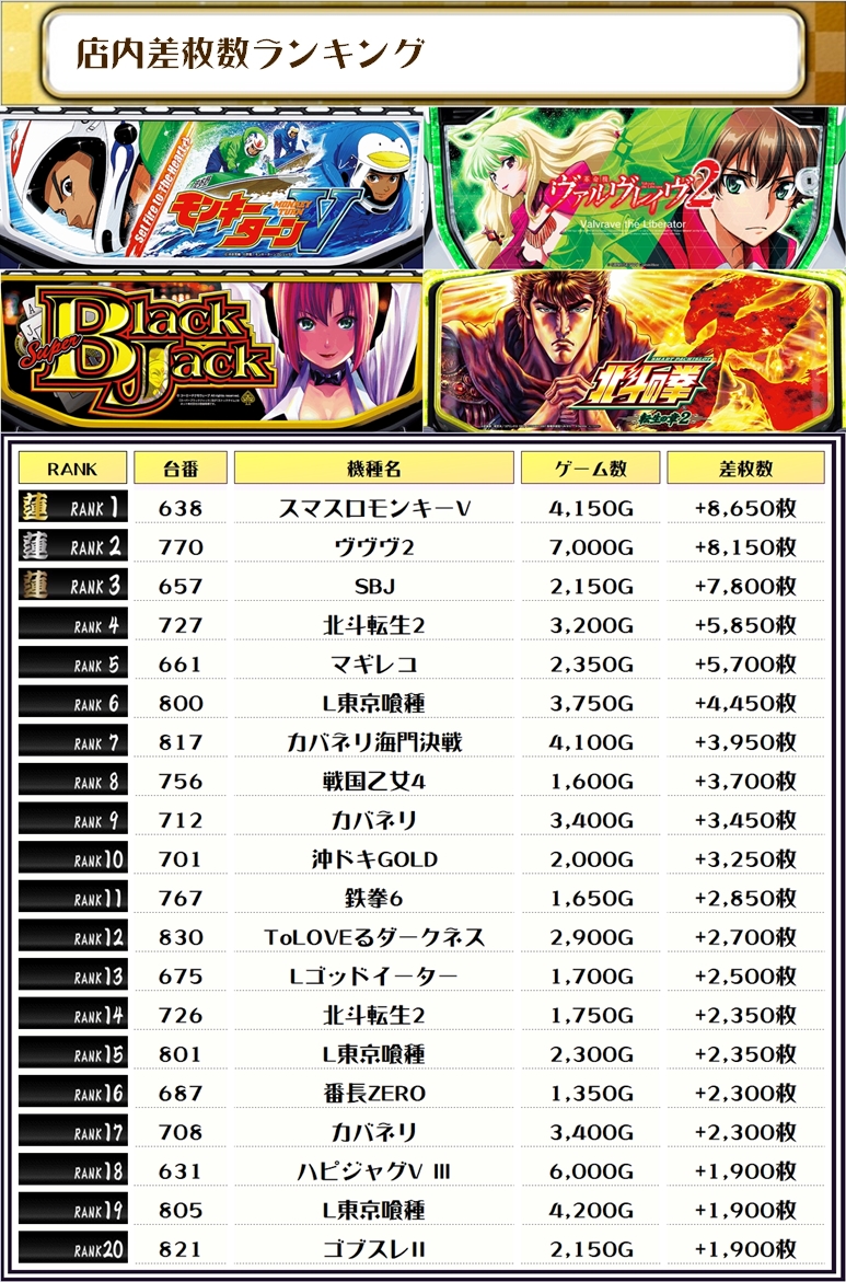 それでは、機種別差枚数ランキングをチェックしましょう❗️
