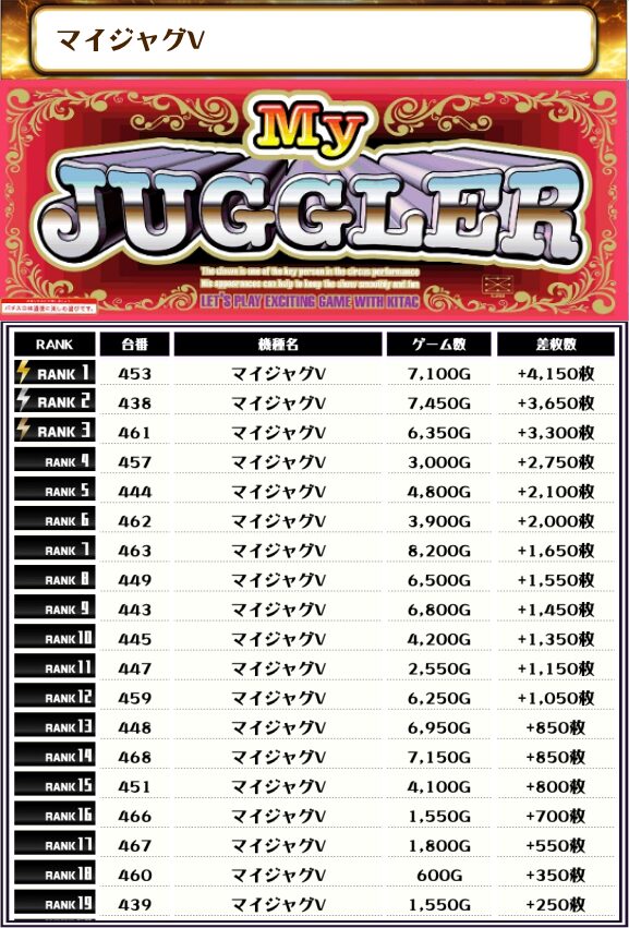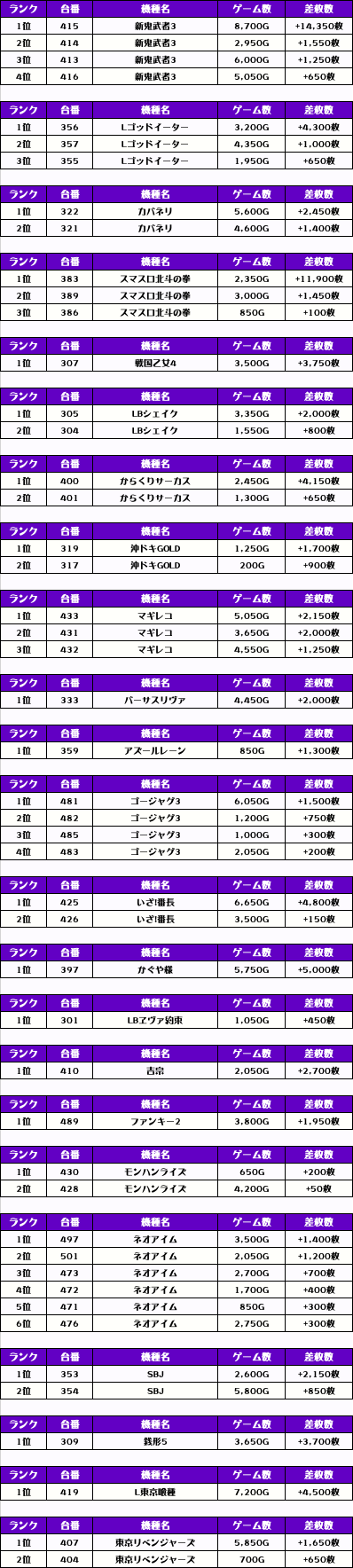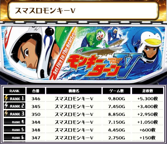 続いては【店内全台の差枚ランキング】をご覧ください!
