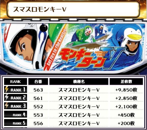 ということで、この日の全体差枚トップは【スマスロモンキーV・563番台】の+9,850枚‼️