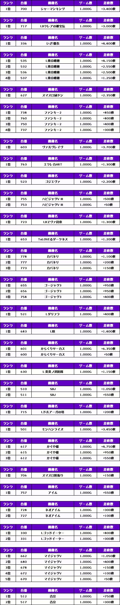 それでは、この日の【機種別差枚ランキング】を見ていきましょう❗️
