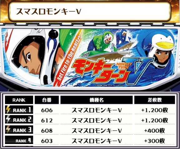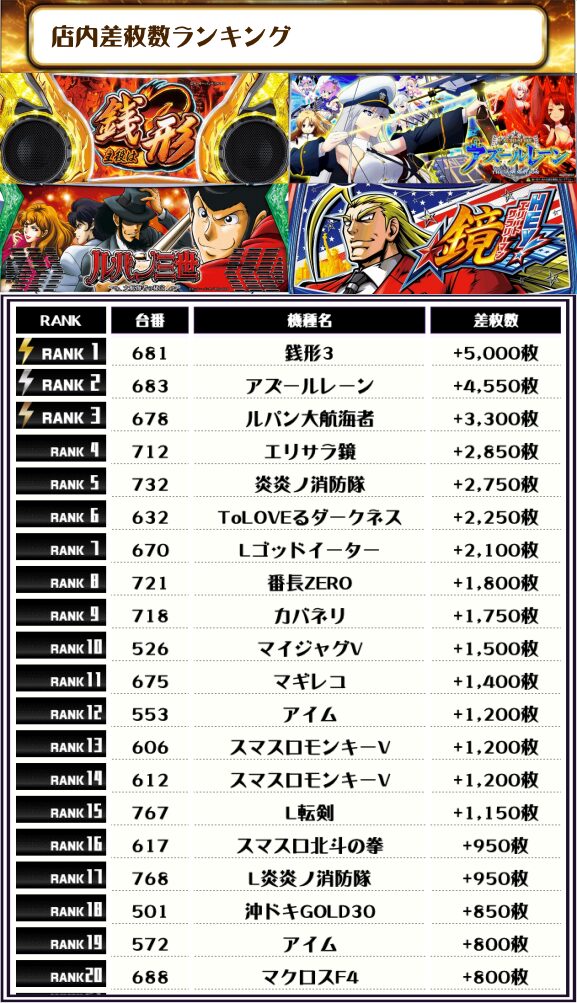続いては「店内全台の差枚ランキング」をご覧ください!