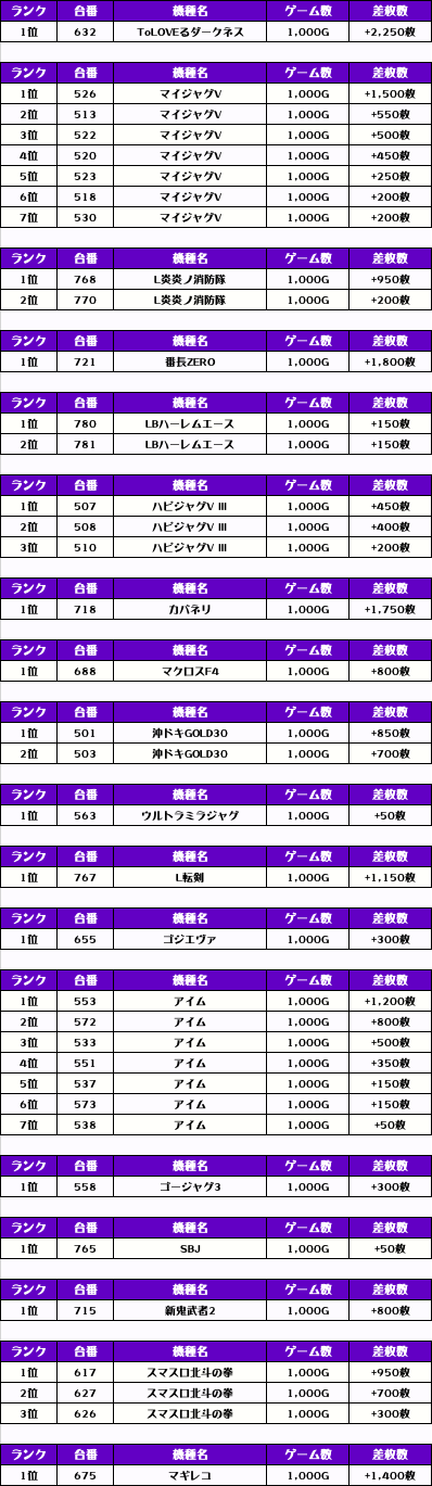 それでは、この日の【機種別差枚ランキング】を見ていきましょう❗️