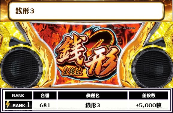 ということで、この日の全体差枚トップは【銭形3・681番台】の+5,000枚‼️