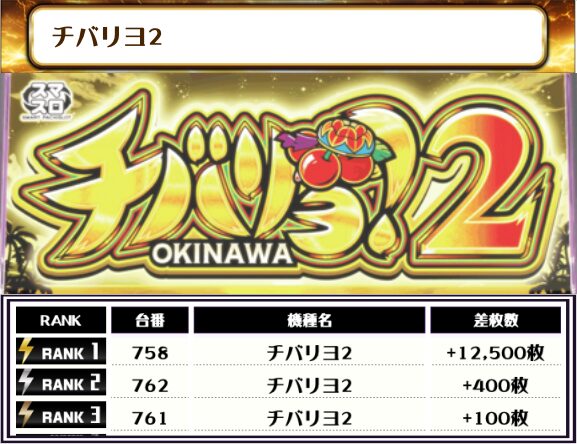 ということで、この日の全体差枚トップは【チバリヨ2・758番台】の+12,500枚‼️