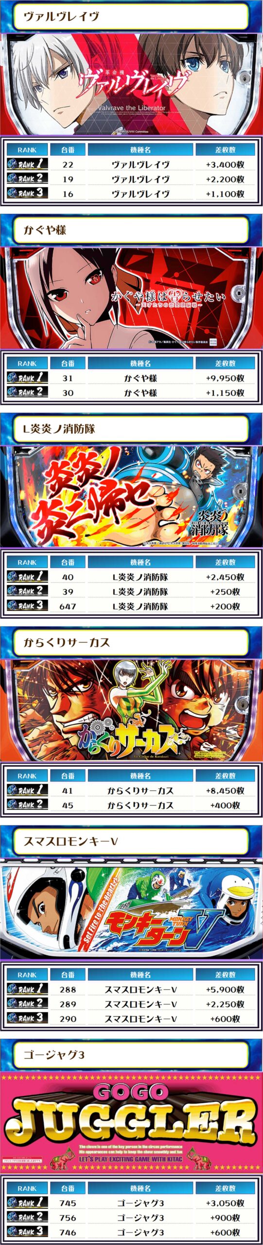 それではこの日の【機種別差枚ランキング】を見ていきましょう✨️✨️