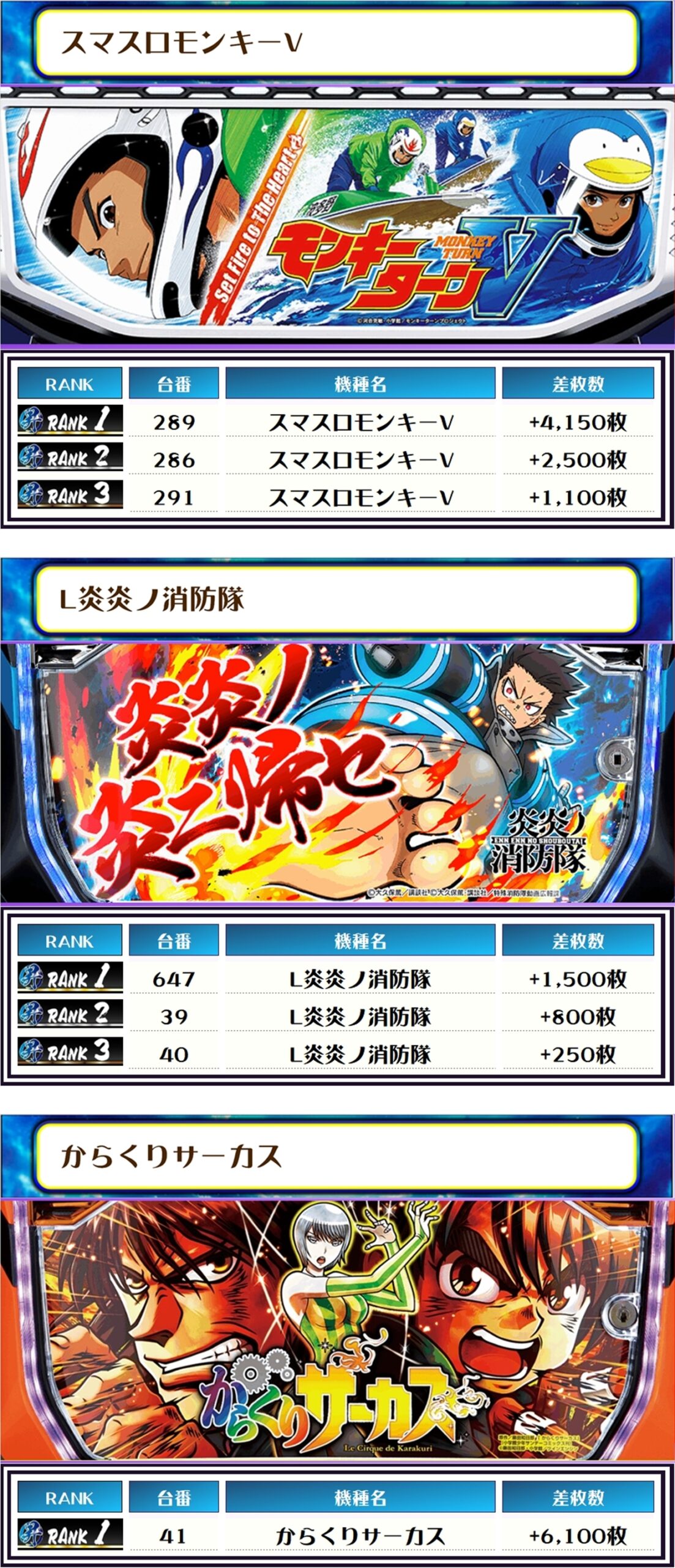 それではこの日の【機種別差枚ランキング】を見ていきましょう✨️✨️