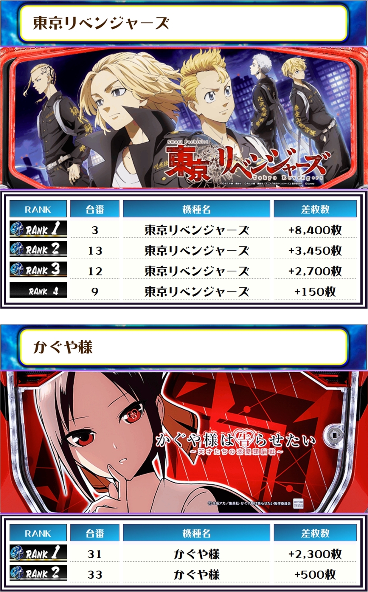 続く2位には【東京リベンジャーズ・3番台】の+8,400枚、そして3位には【Lゴッドイーター・628番台】の+8,250枚がランクインしていますっ🌈✨