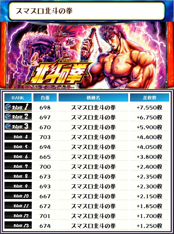 それではこの日の【機種別差枚ランキング】を見ていきましょう✨️✨️