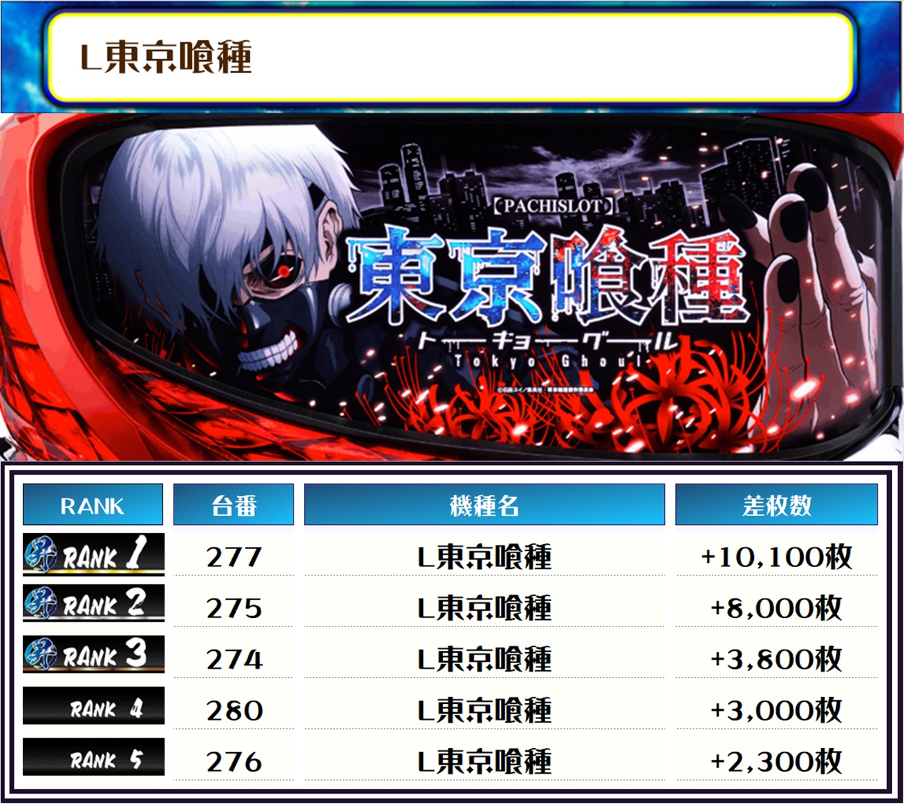 続く2位には【ダンバイン・689番台】の+13,950枚、そして3位には【L東京喰種・277番台】の+10,100枚がランクインしていますっ🌈✨