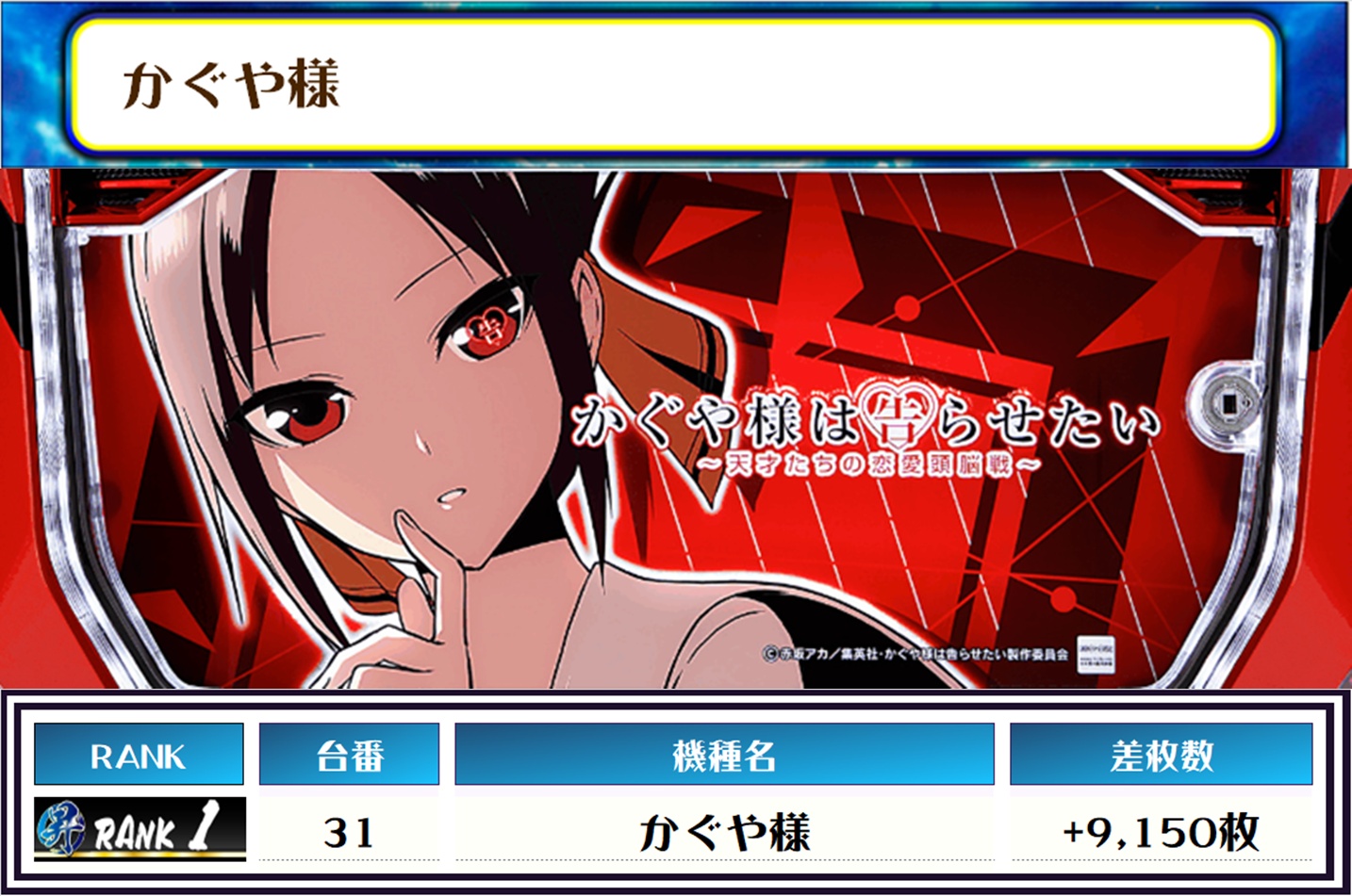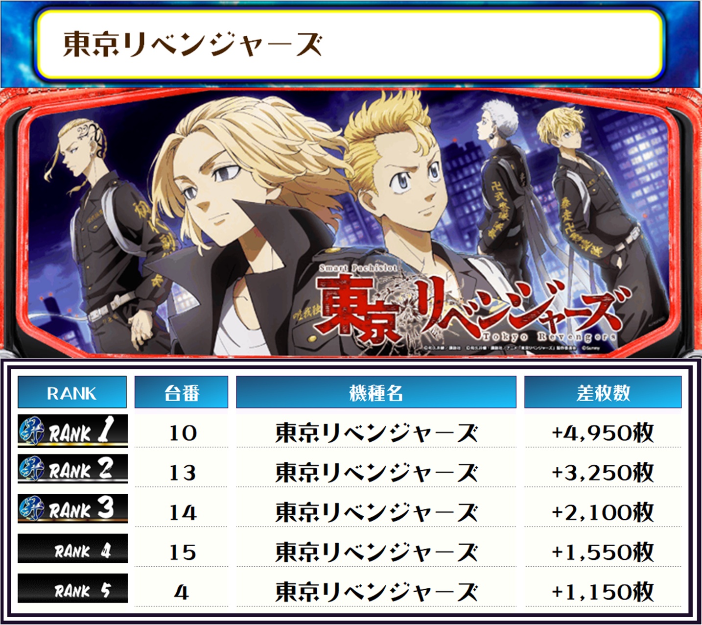 それではこの日の【機種別差枚ランキング】を見ていきましょう✨️✨️