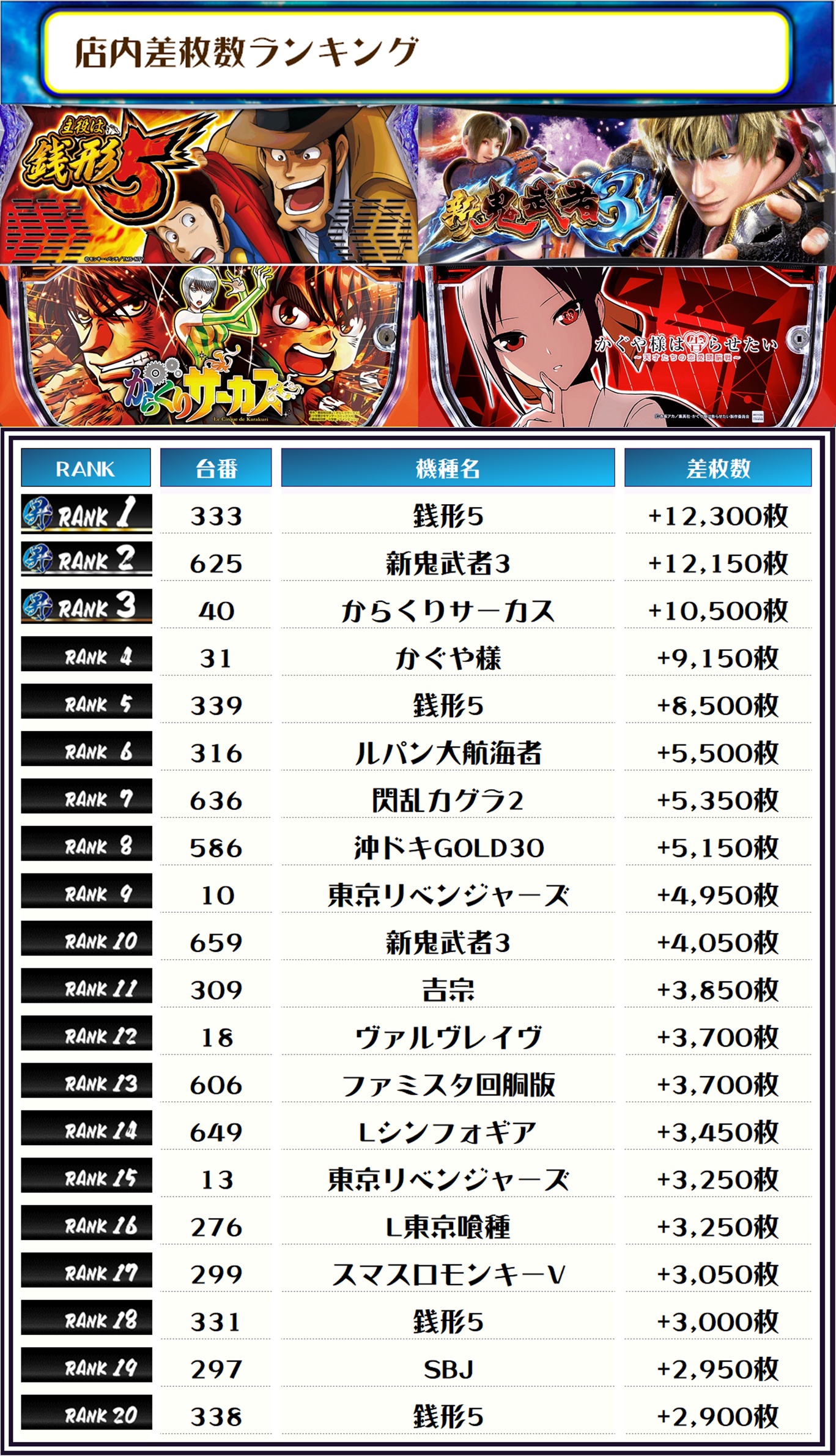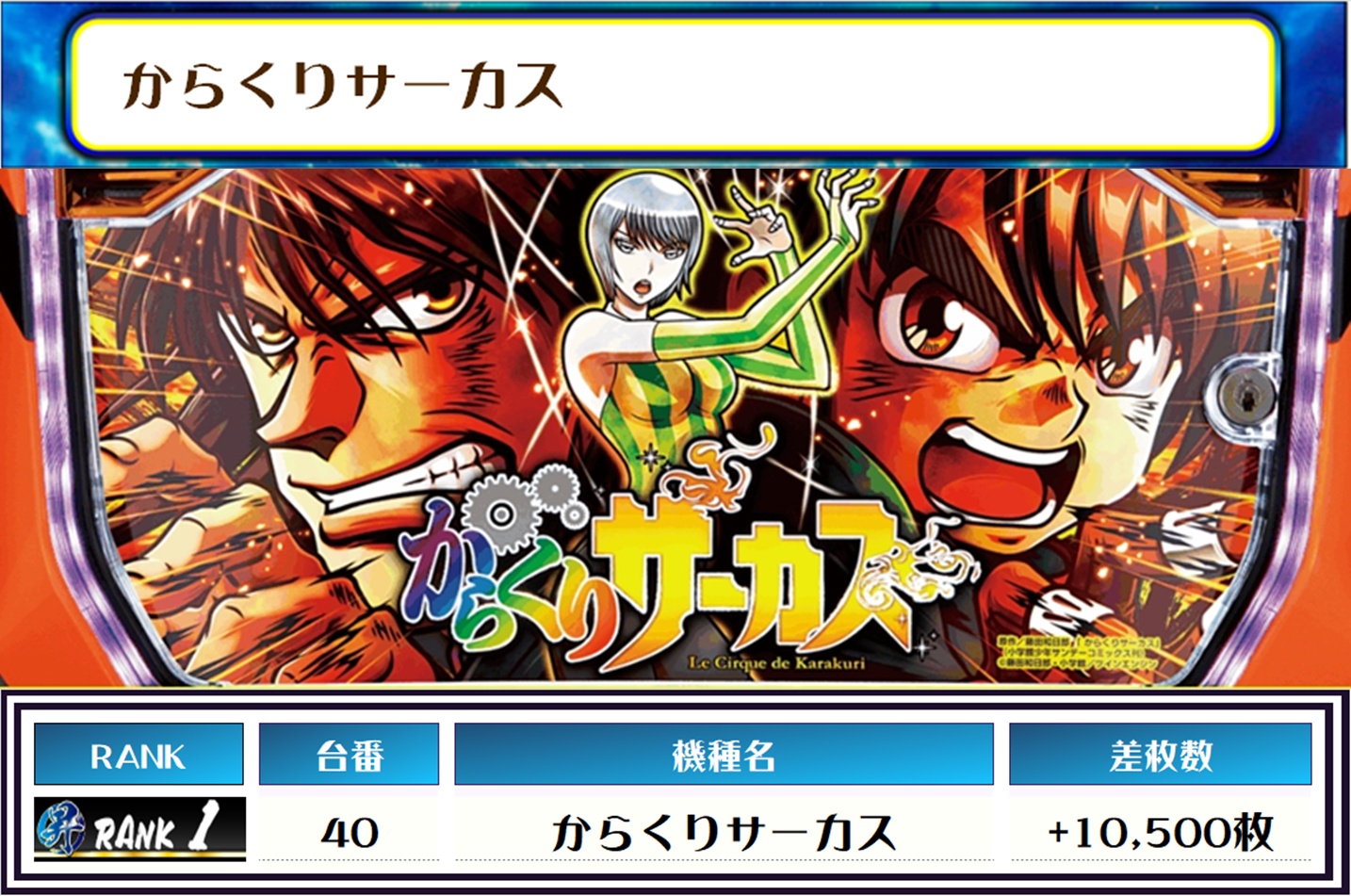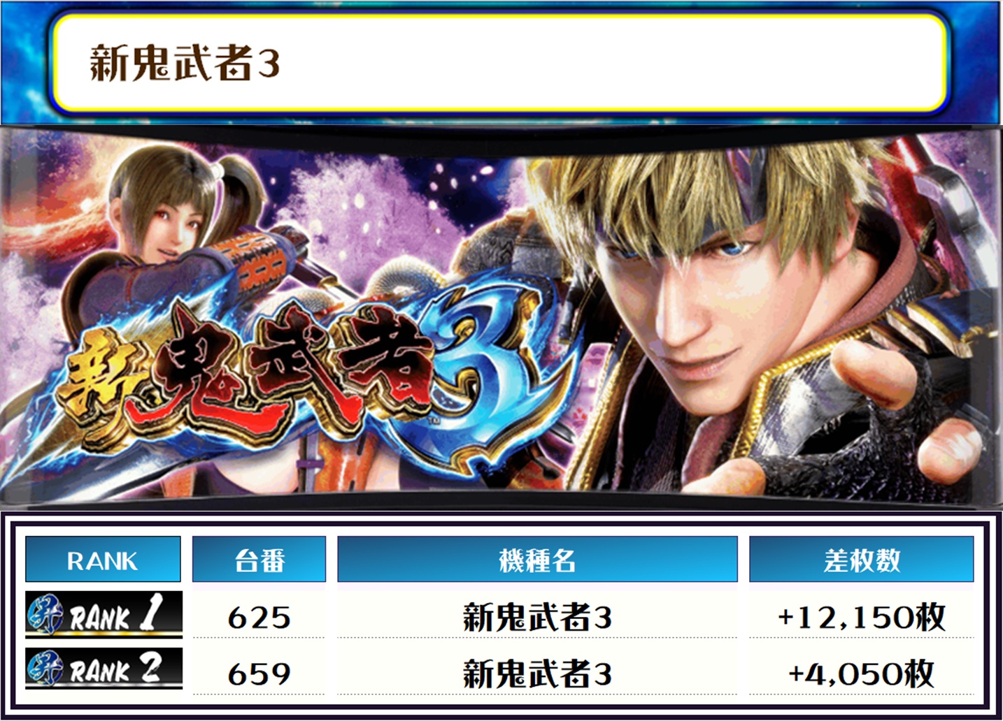 続く2位には【新鬼武者3・625番台】の+12,150枚、そして3位には【からくりサーカス・40番台】の+10,500枚がランクインしていますっ🌈✨