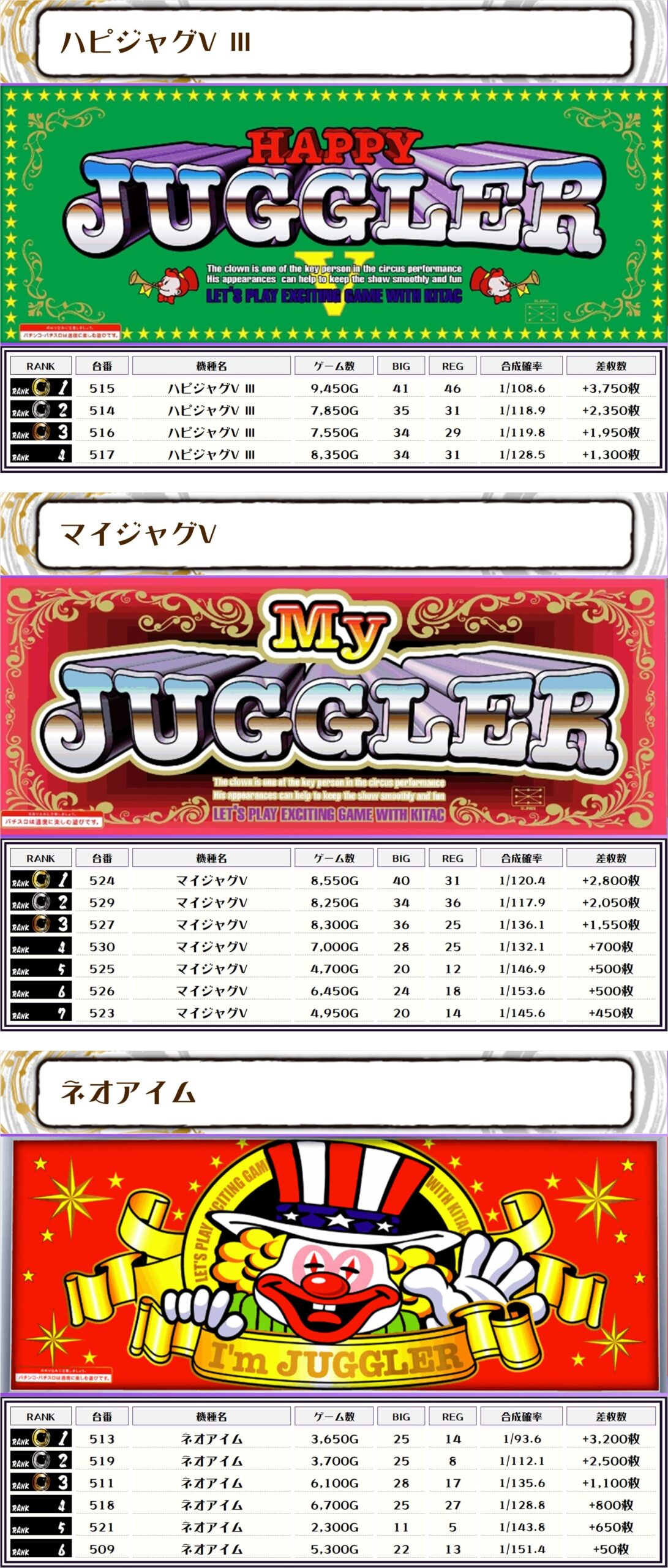 その他の機種の差枚はコチラ❗️