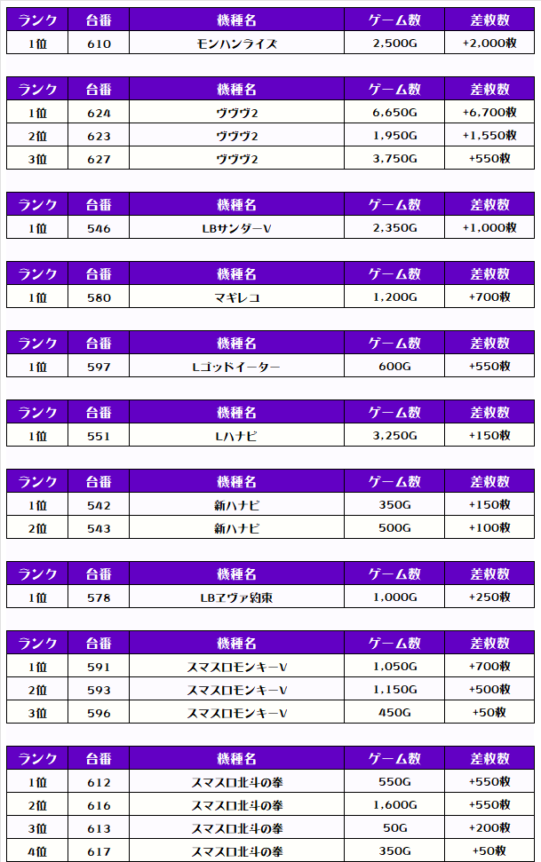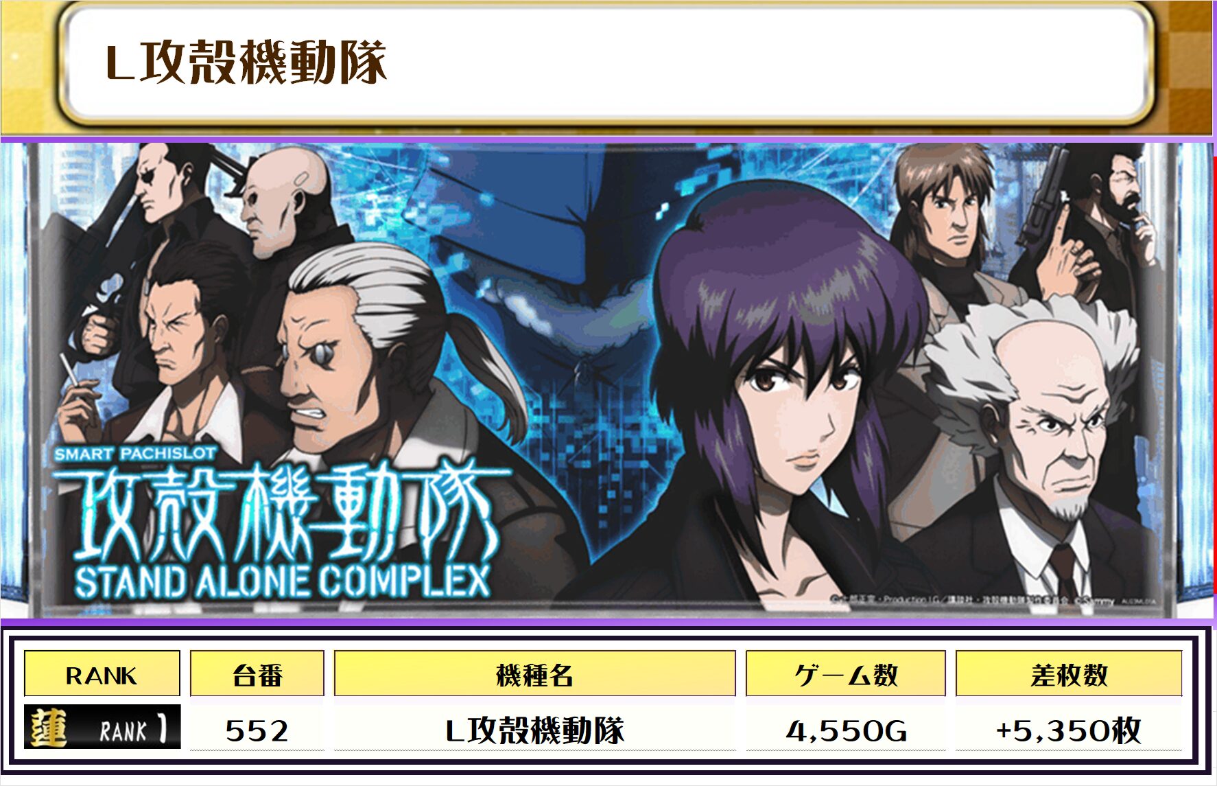 2位には【ヴヴヴ2・624番台】の+6,700枚、そして3位には【L攻殻機動隊・552番台】の+5,350枚がランクインっ🏆