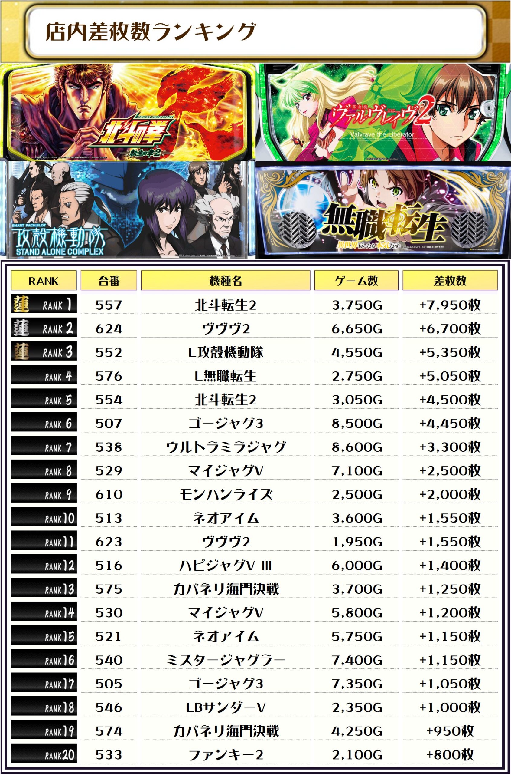 それでは【機種別差枚ランキング】をチェックしていきましょう🙆♀️