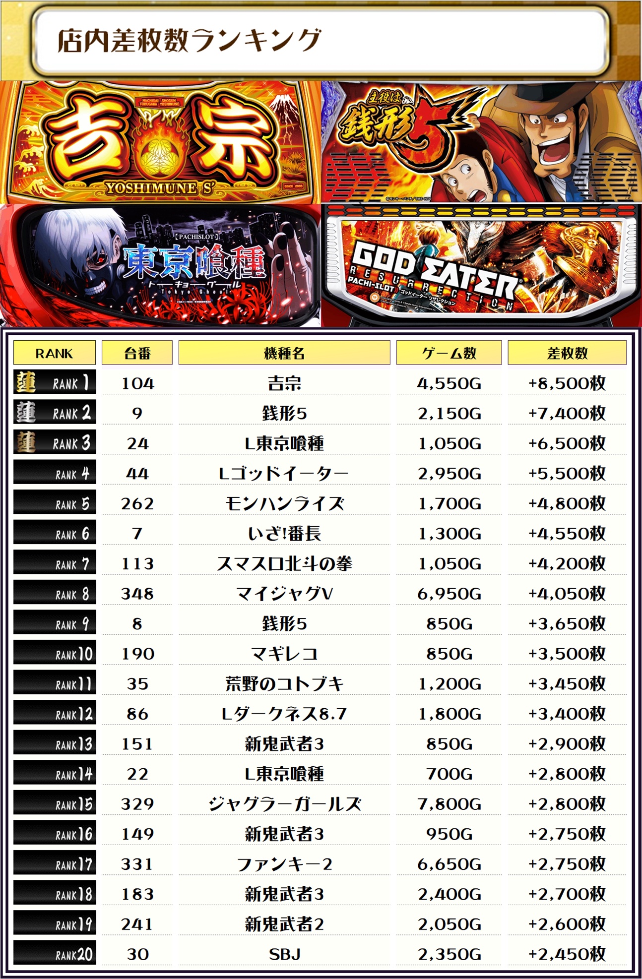 それでは、この日の【機種別差枚ランキング】から見ていきましょう❗️