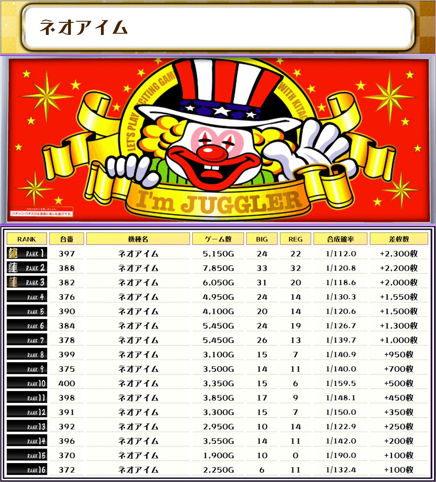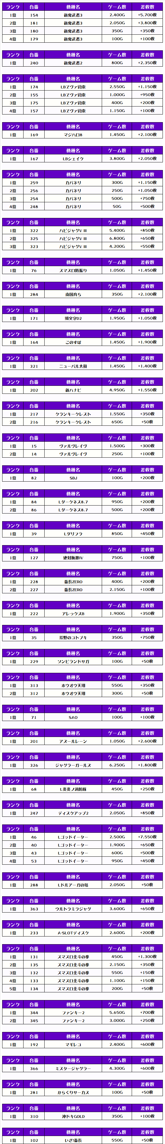 それでは、この日の【機種別差枚ランキング】から見ていきましょう❗️