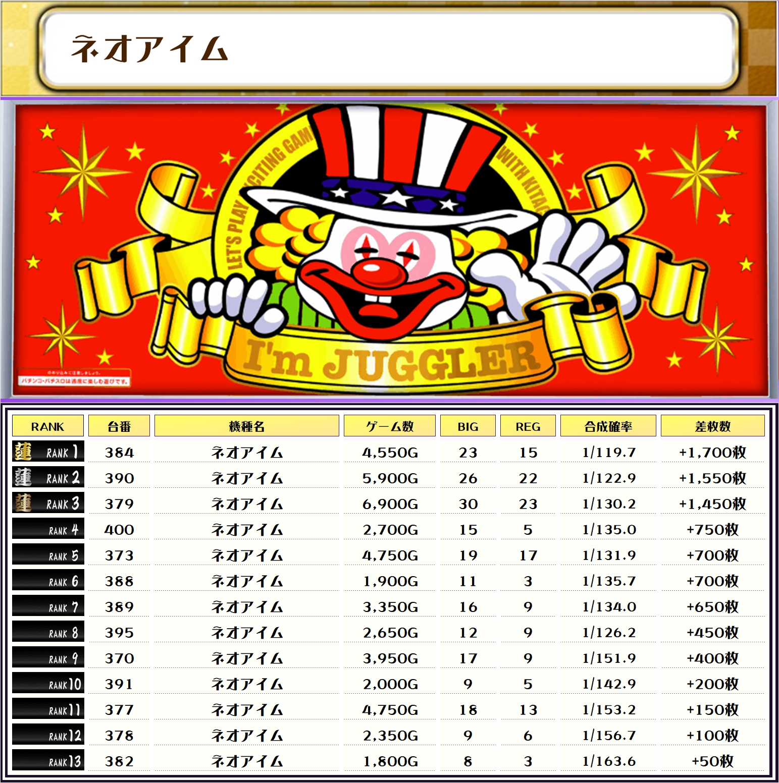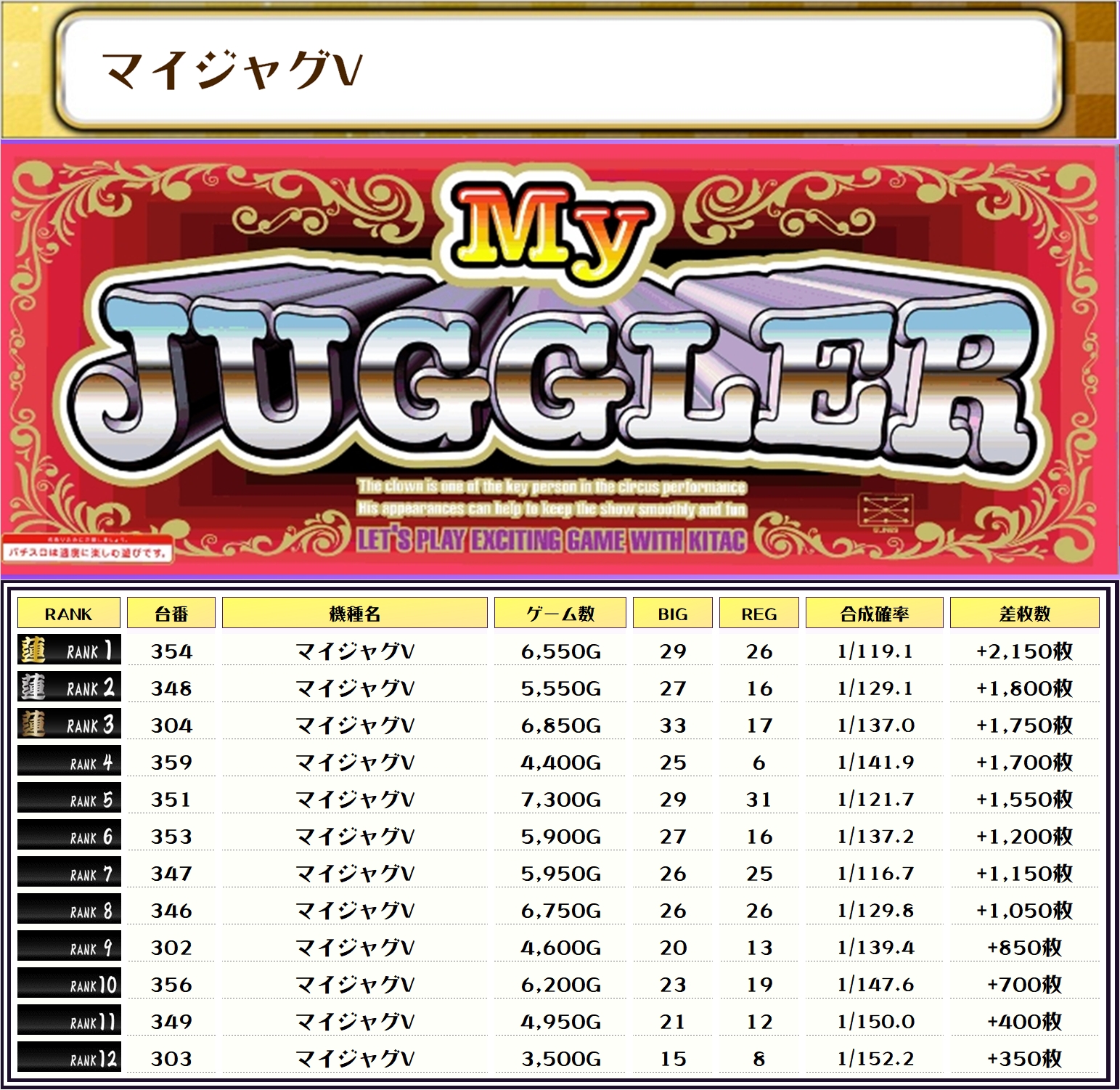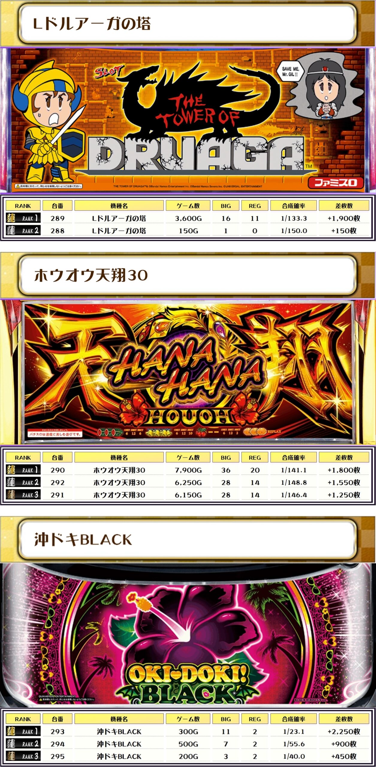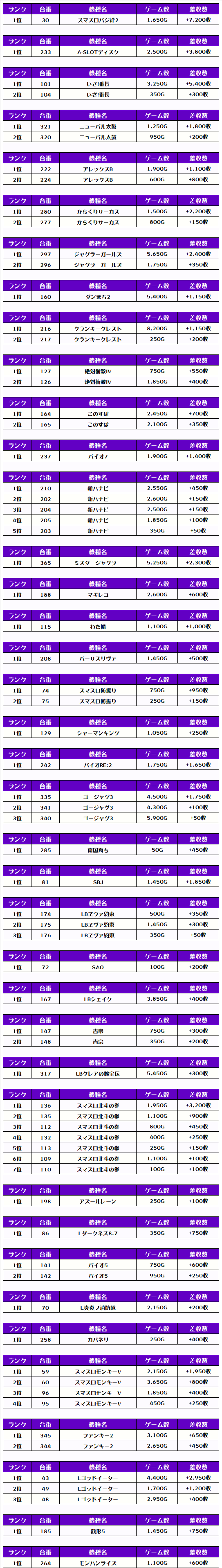 それでは、この日の【機種別差枚ランキング】から見ていきましょう❗️