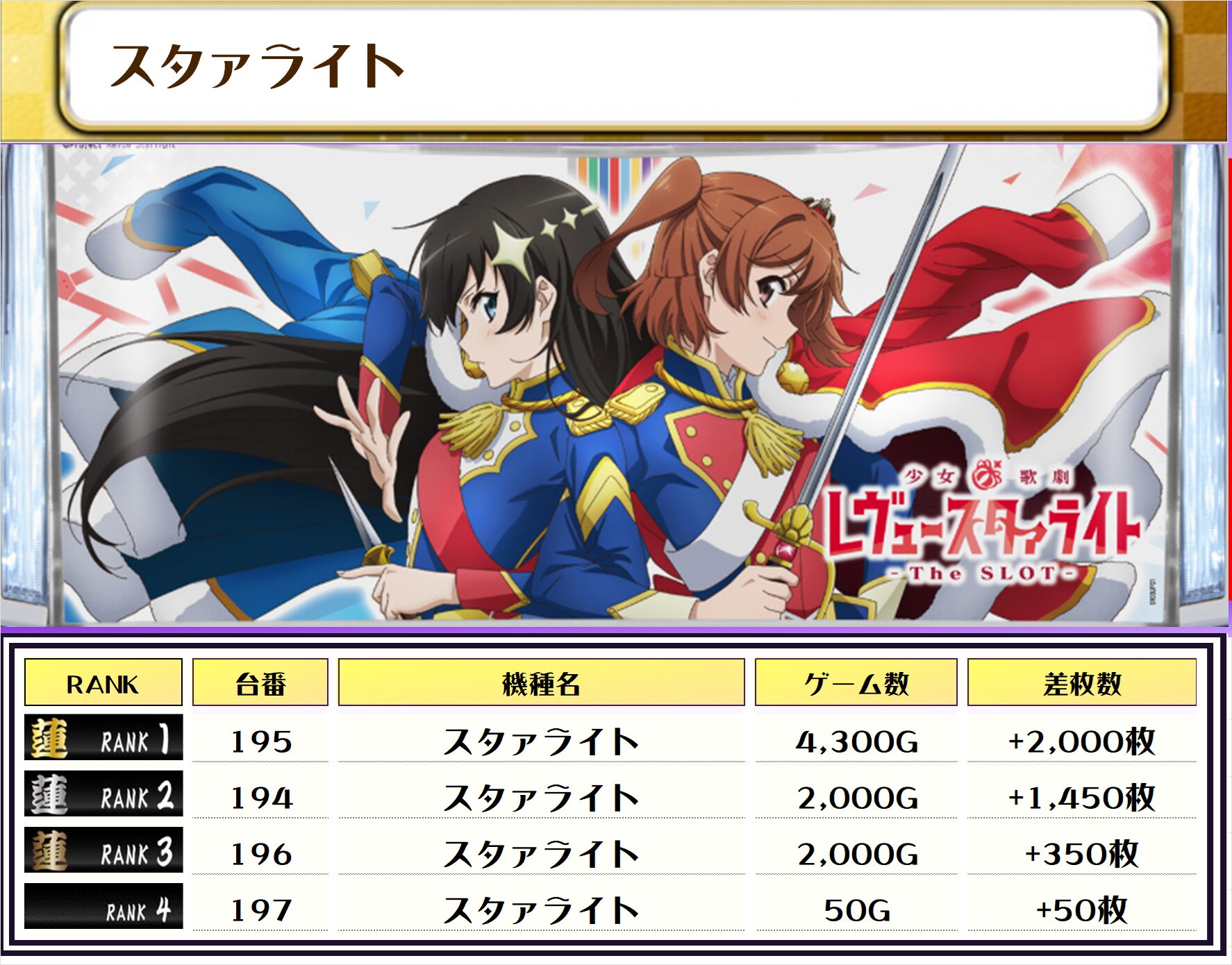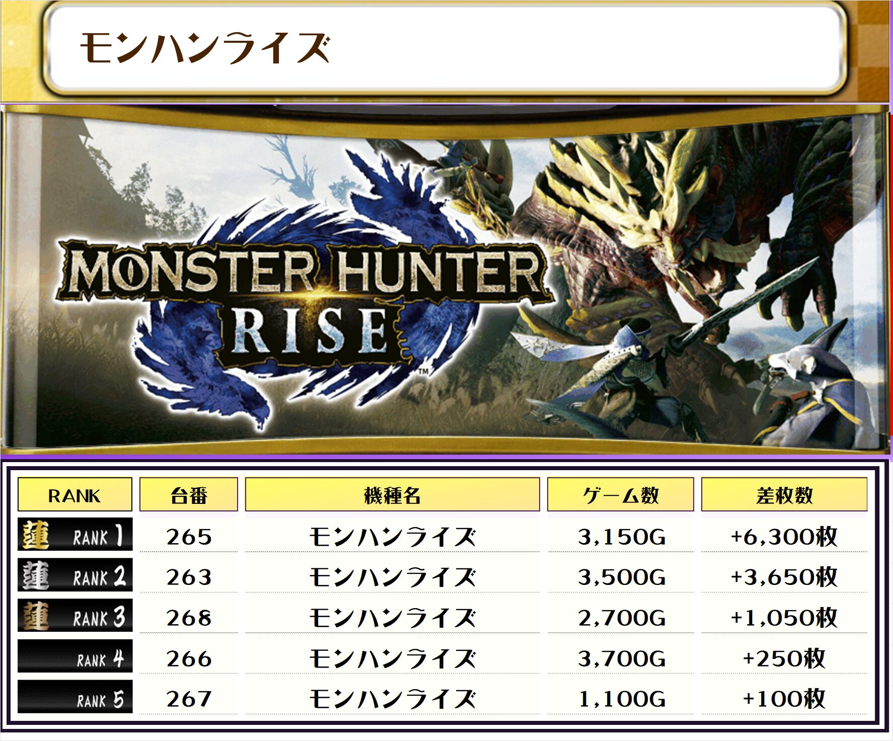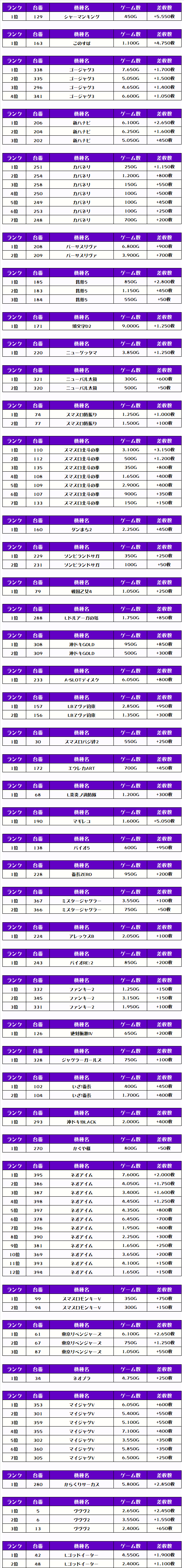 それでは、この日の【機種別差枚ランキング】から見ていきましょう❗️