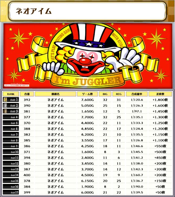 特にネオアイムは設置の半分以上がプラス差枚でフィニッシュでした✨