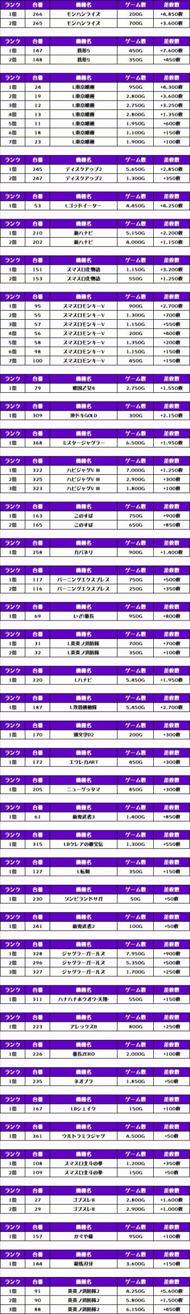 今回もピックアップした機種は高稼働だった機種となります👍