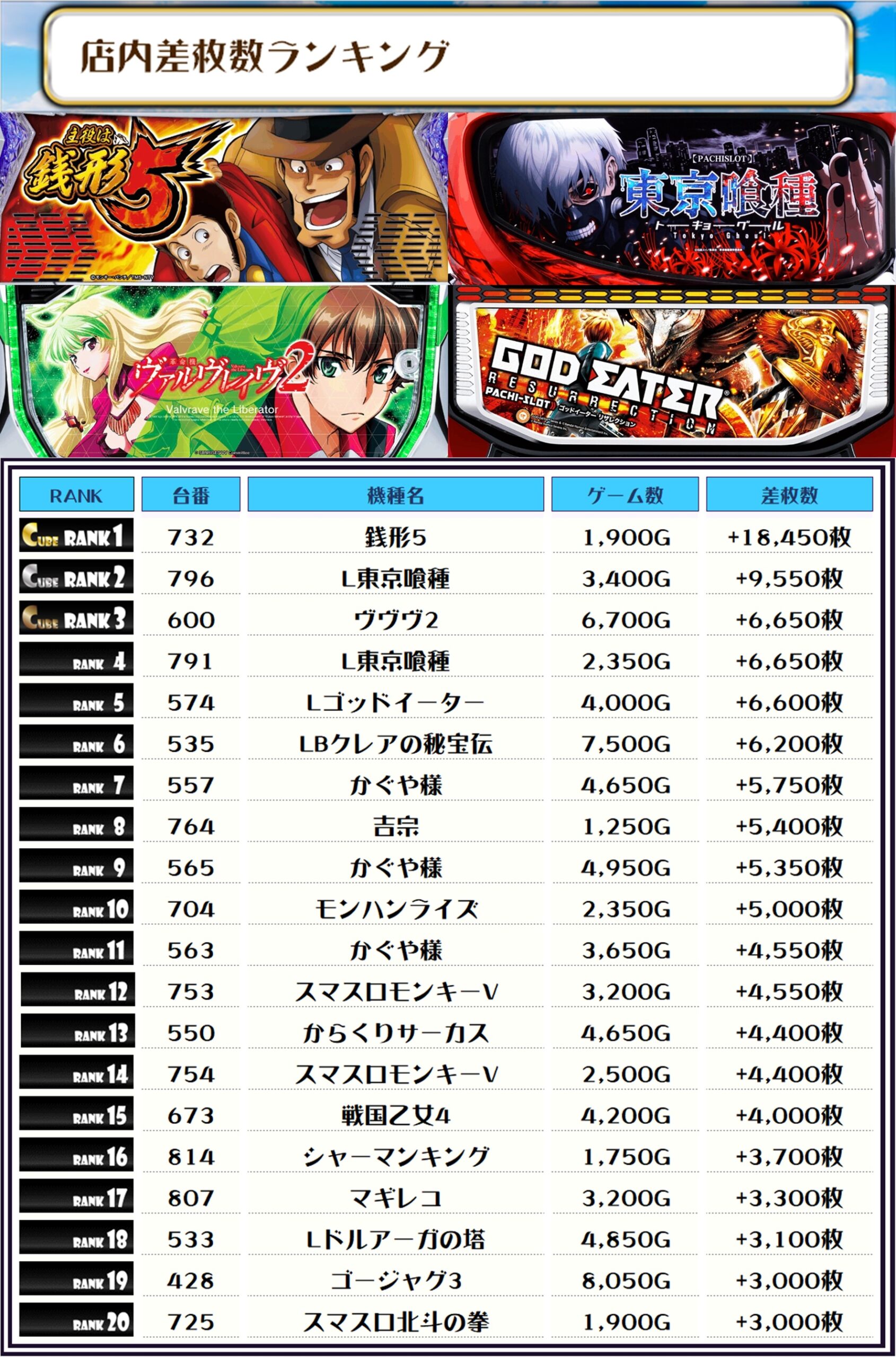 最後に、この日の店内差枚ランキングでやんすっ❗️