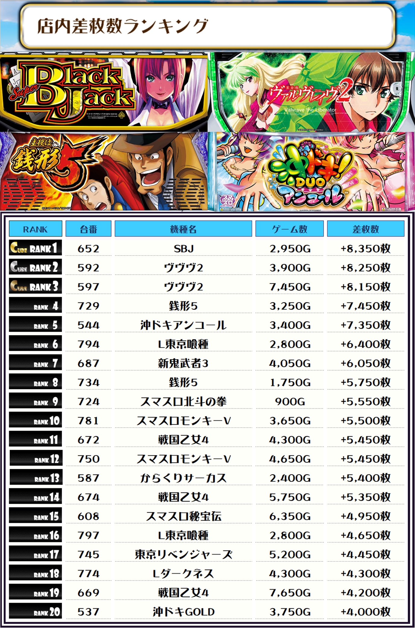 最後に、この日の店内差枚ランキングでやんすっ❗️