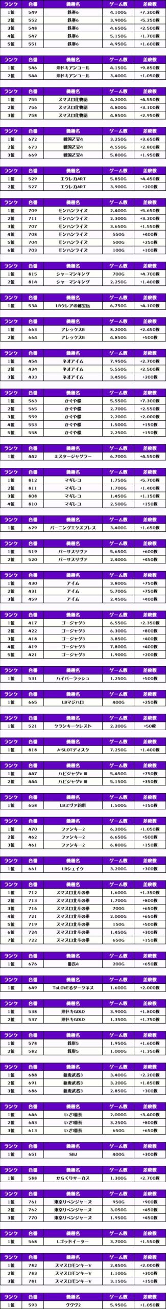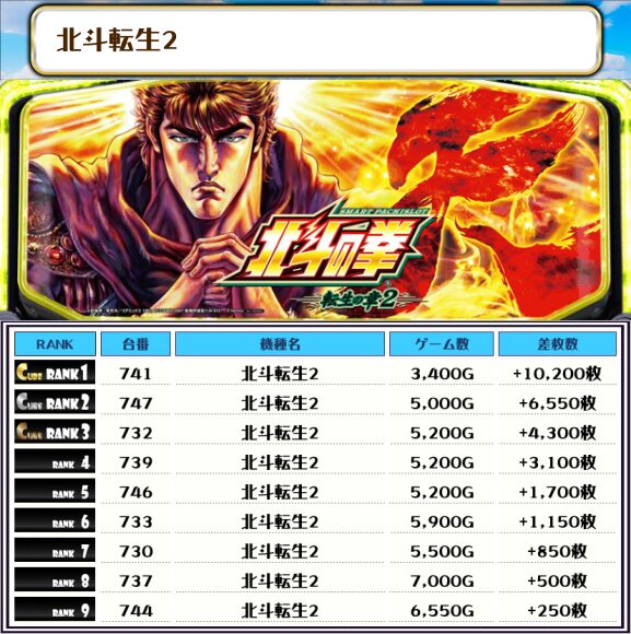 特に北斗転生2はランキングにも複数ランクインしていて優秀台が多かったでやんす!