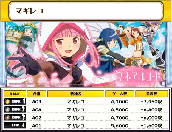 ピックアップした機種の中でもマギレコと番長ZEROは全台がプラス差枚じゃったぞ🎉 これだけ優秀台があると活気があって見てみて楽しいのぅ☺️