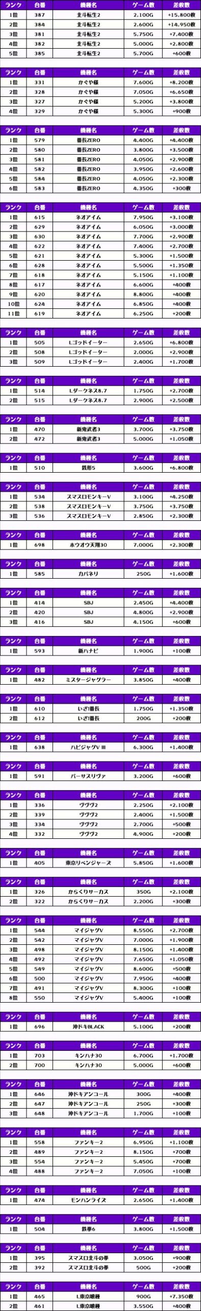 それでは、この日の機種別差枚ランキングをお伝えしていこうかの❗️