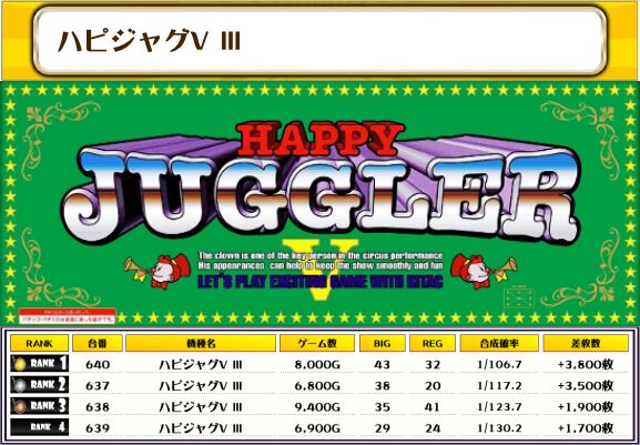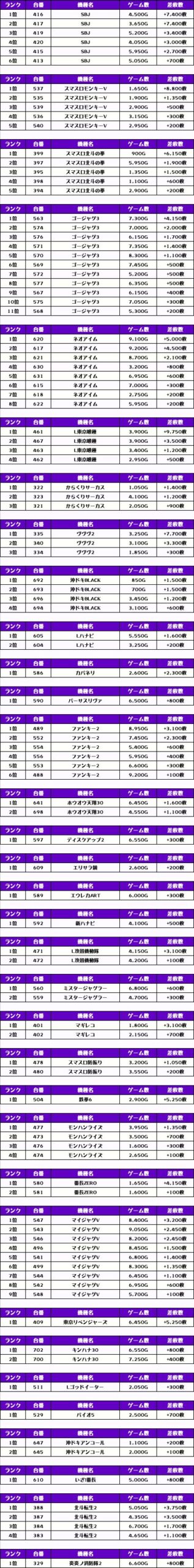 それでは、この日の【機種別差枚ランキング】を見ていきましょう❗️