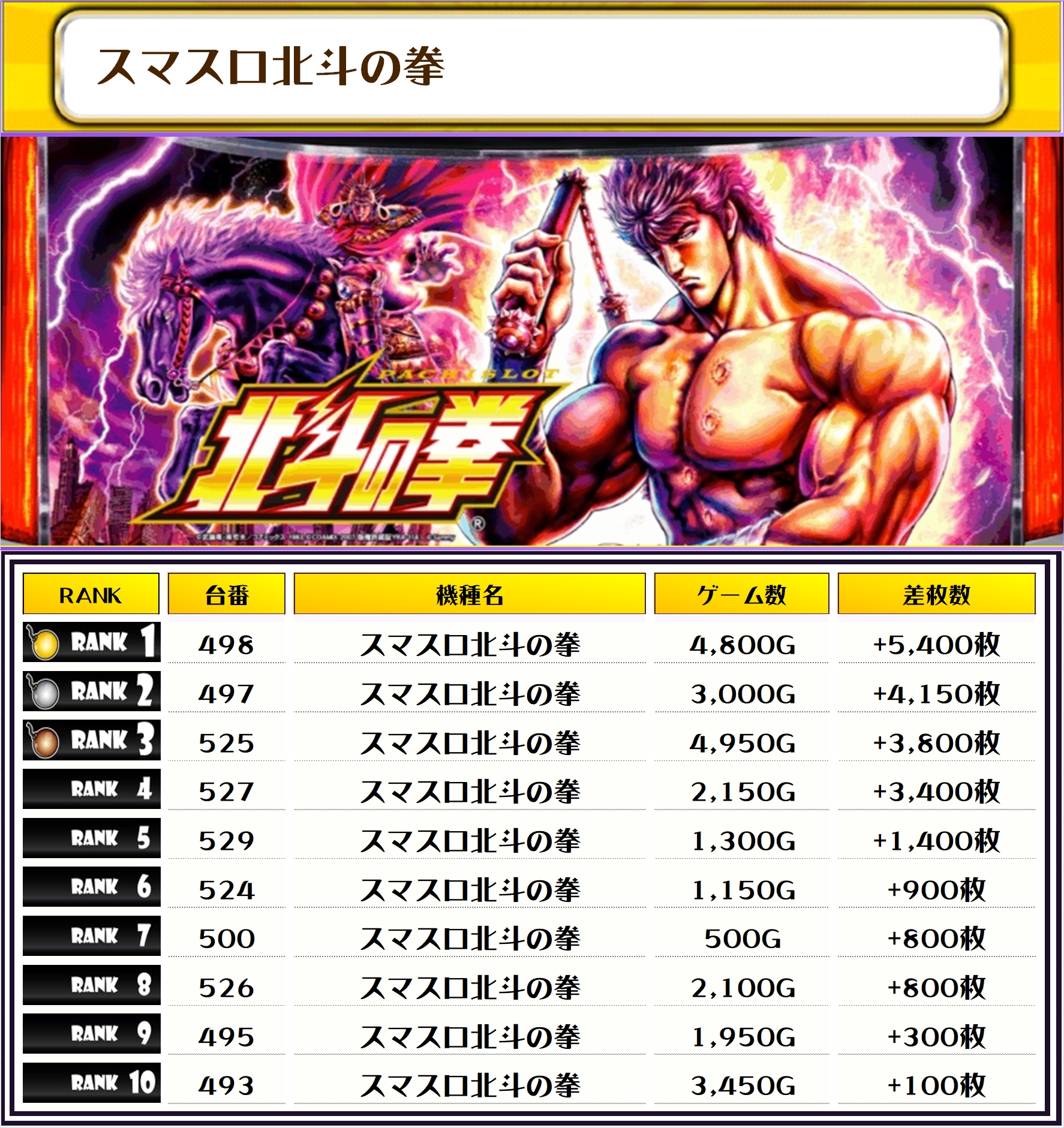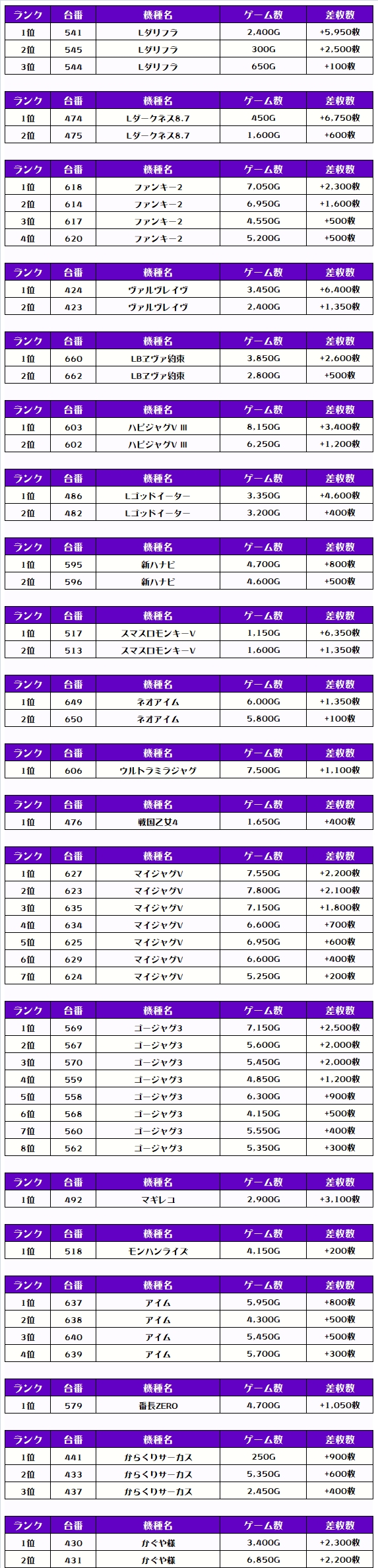 それではこの日の【機種別差枚ランキング】を見ていきましょう!