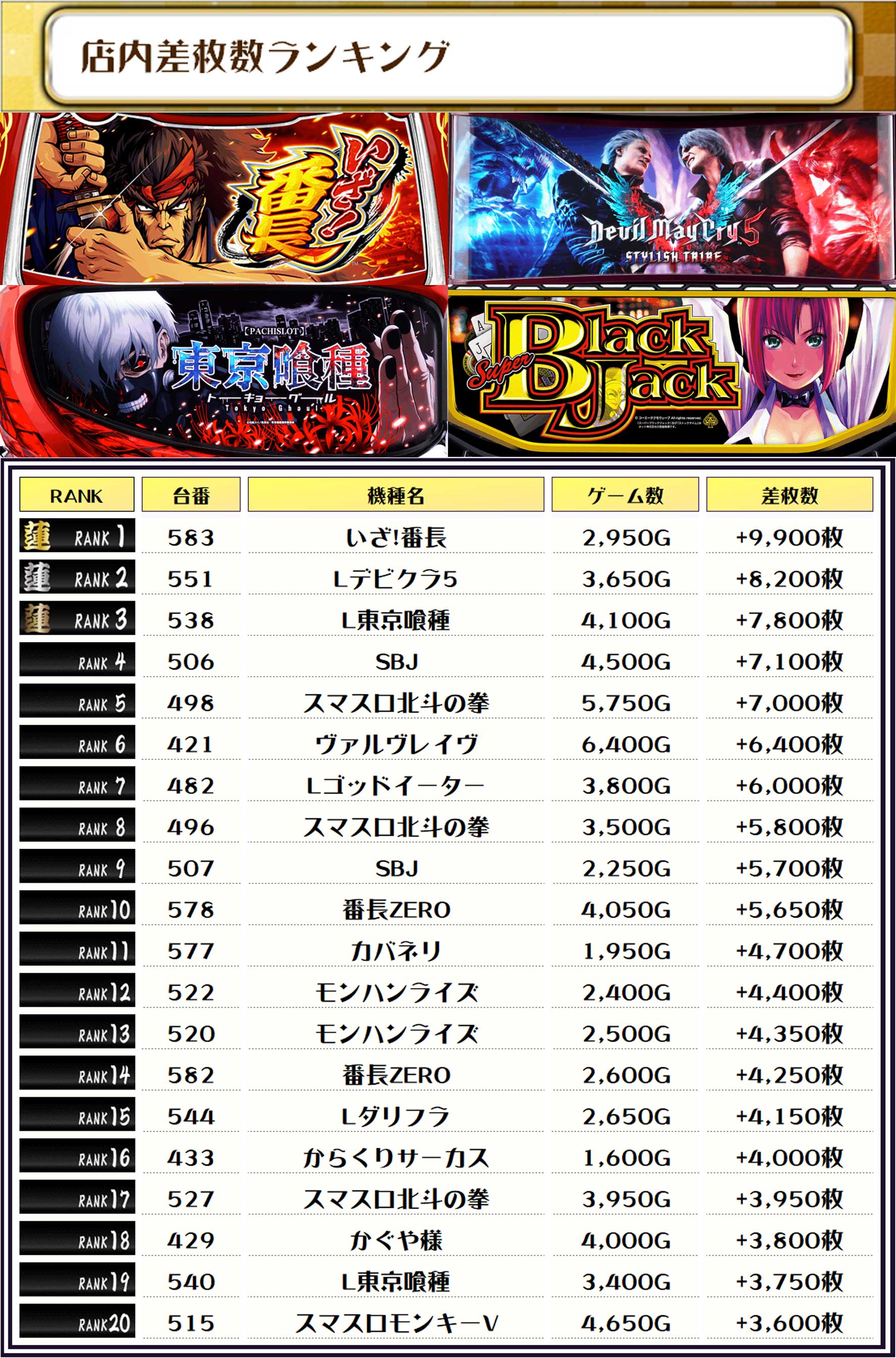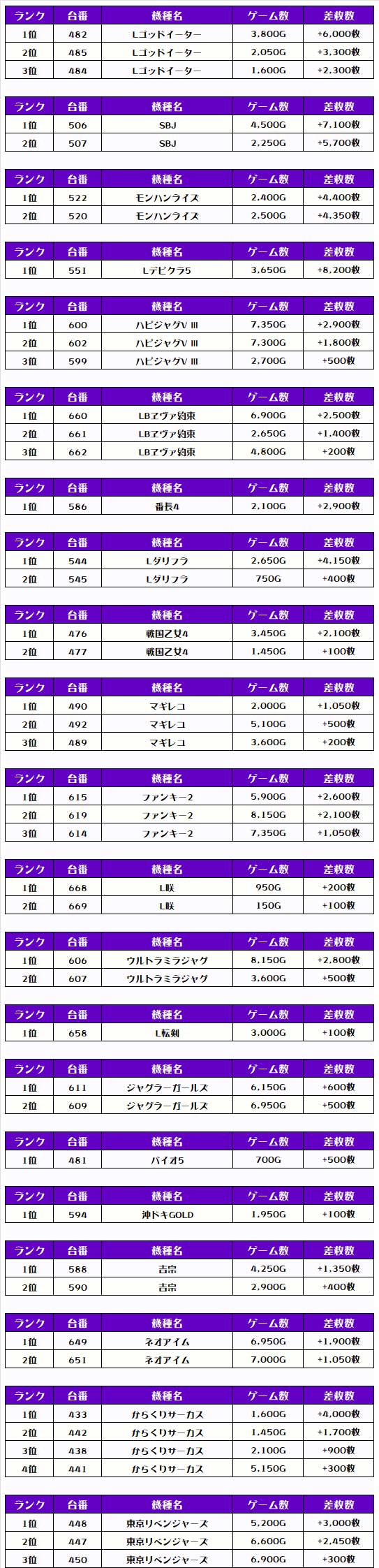 それでは、この日の【機種別差枚ランキング】を見ていきましょう❗️