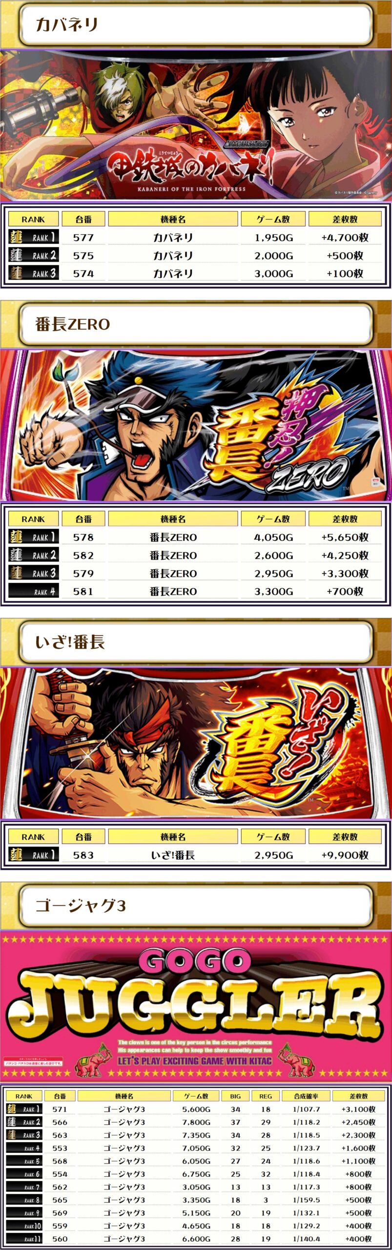 この日、全体の差枚トップに輝いたのは【いざ!番長・583番台】で+9,900枚‼️