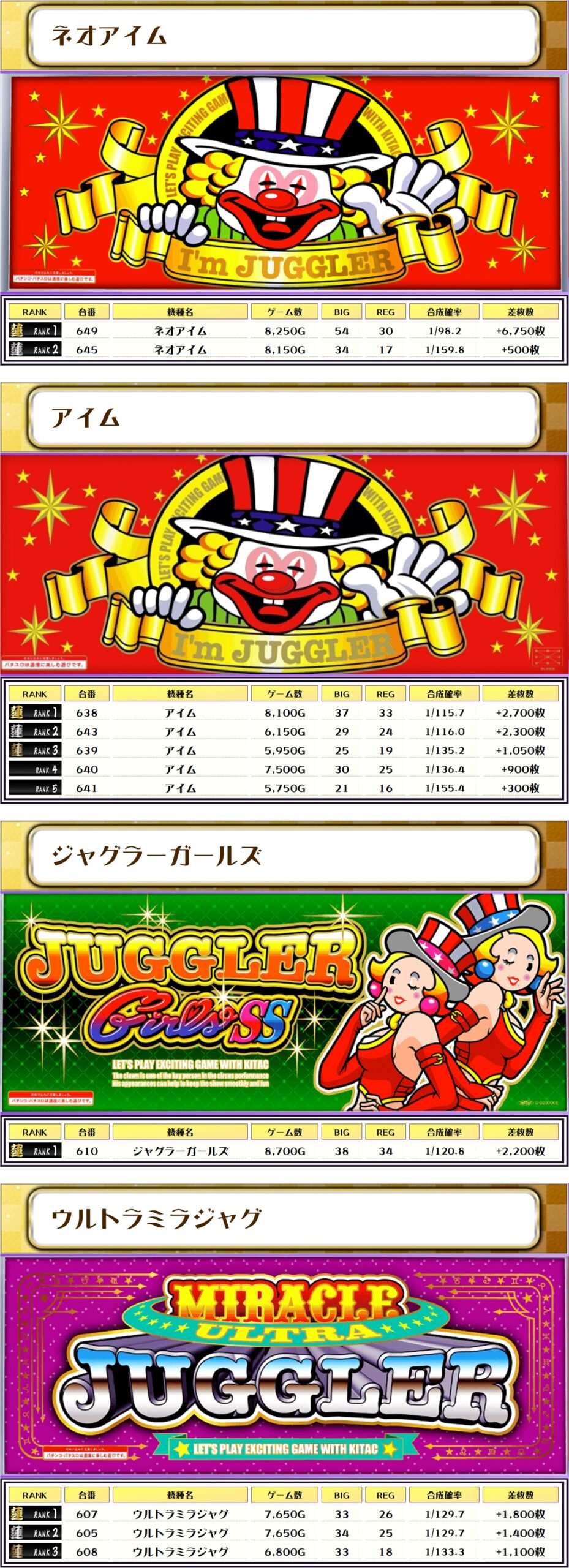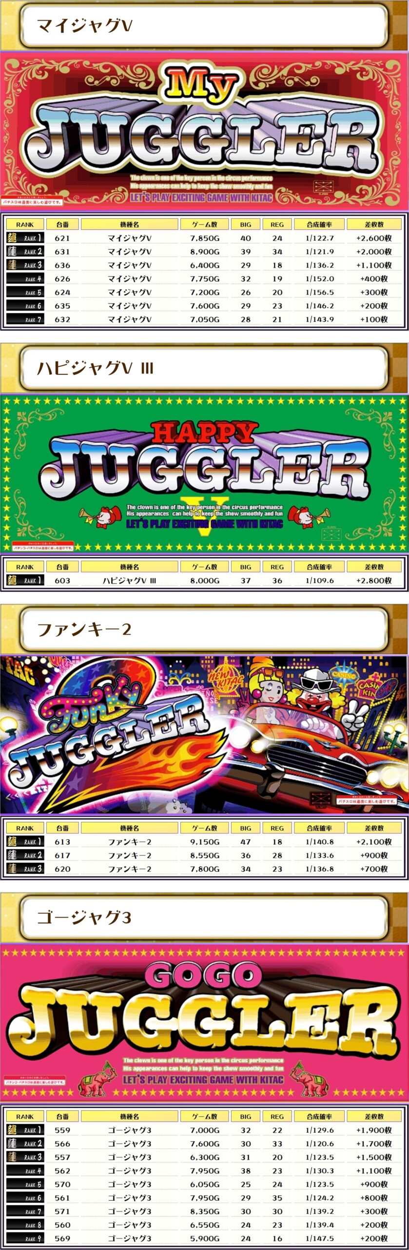 ジャグラー系は全機種に優秀台が隠されていてその割合も高かったみたいだよ😁