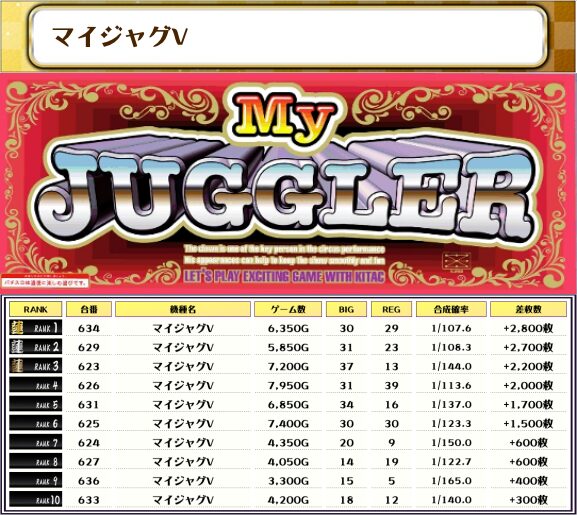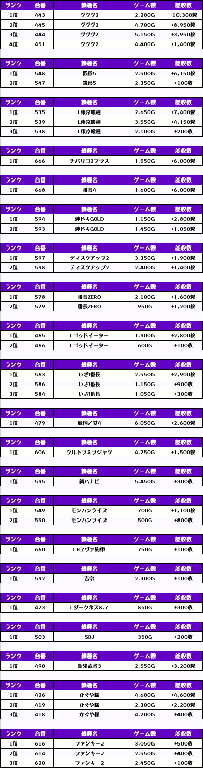 それではこの日の【機種別差枚ランキング】を見ていきましょう!