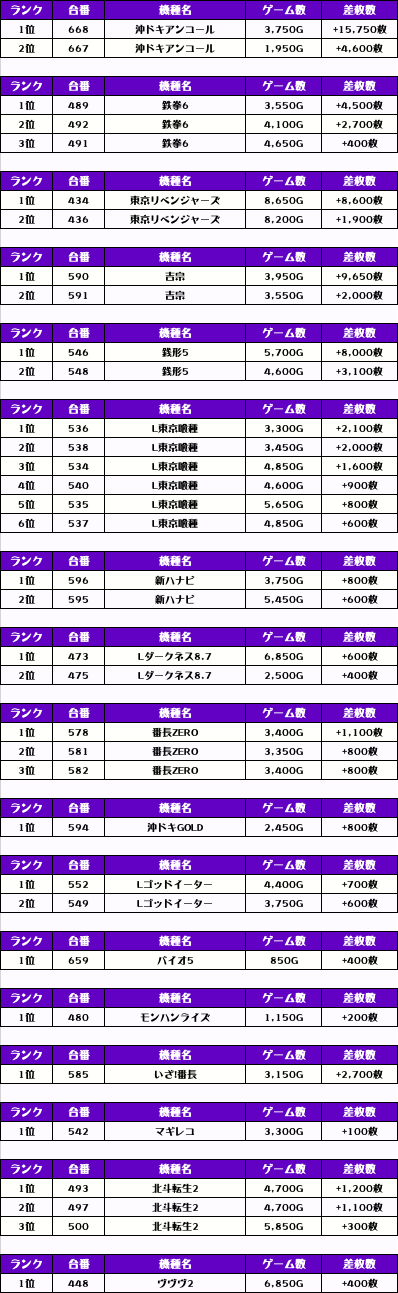 それでは早速【機種別差枚ランキング】をチェックしていきましょう🙆‍♀️
