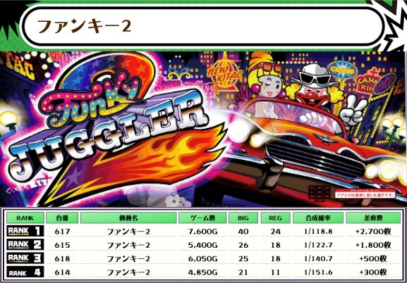 それではこの日の【機種別差枚ランキング】を見ていきましょう!