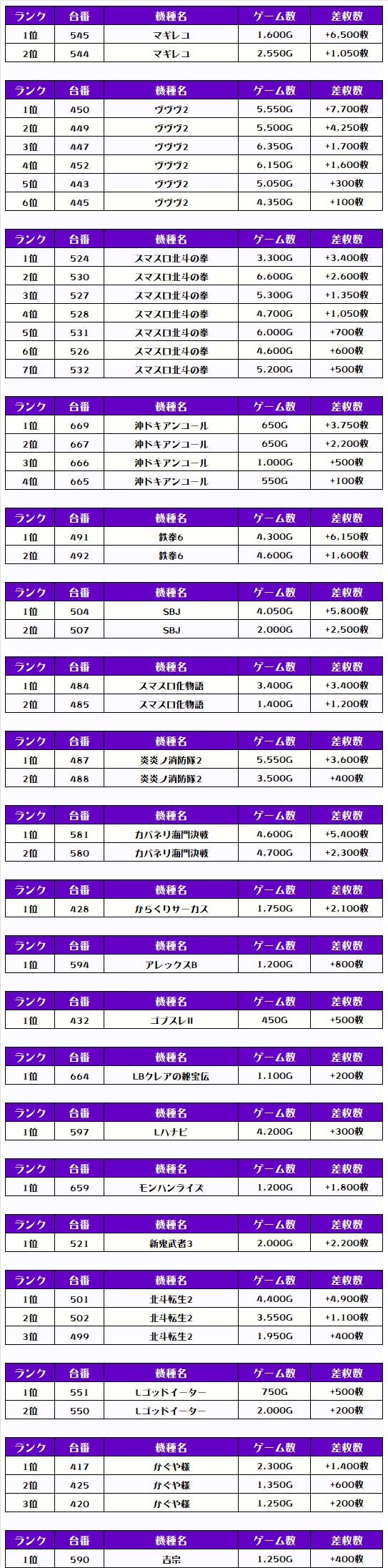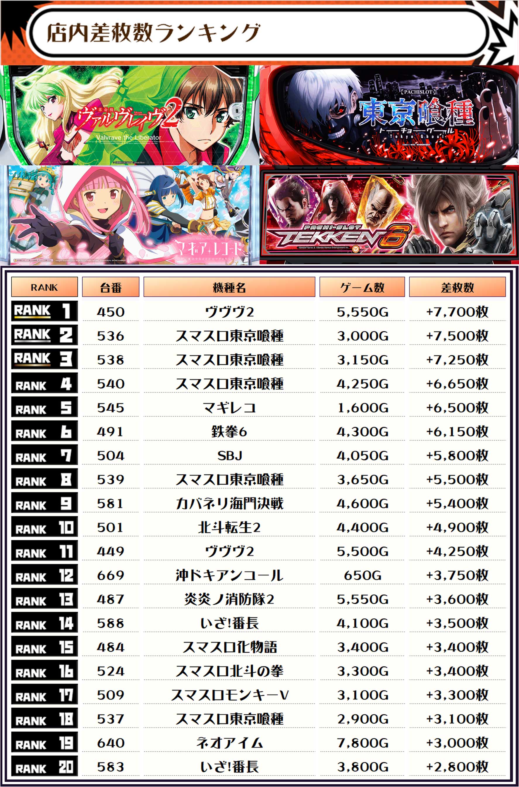 それでは、この日の【機種別差枚ランキング】を見ていきましょう❗️