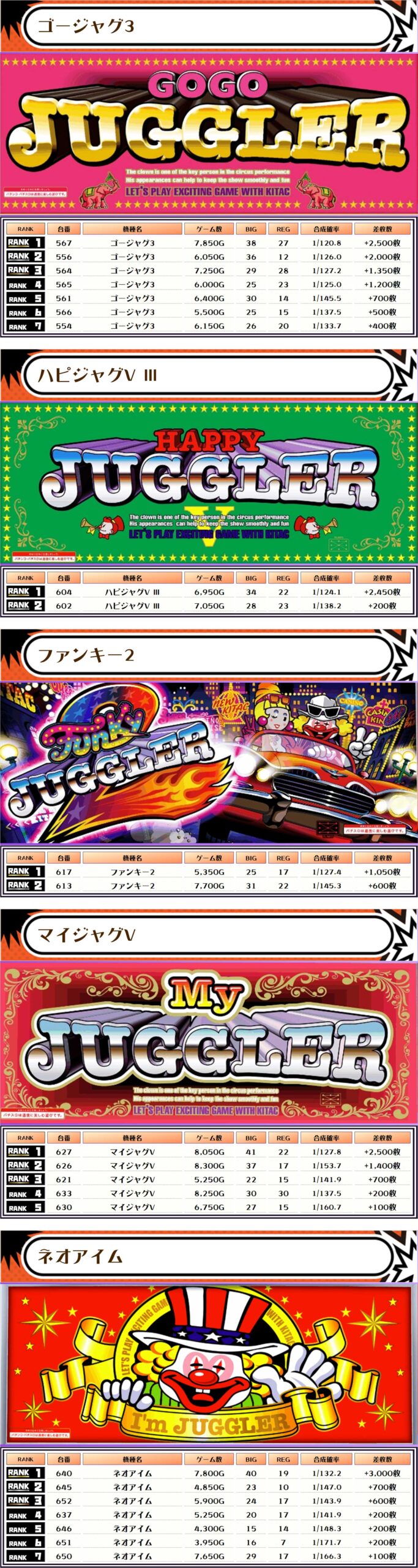ピックアップしたジャグラーシリーズには優秀台を複数確認✋