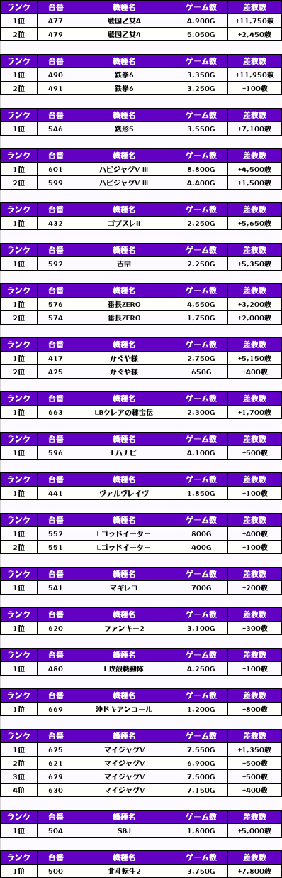 それでは、この日の【機種別差枚ランキング】を見ていきましょう❗️